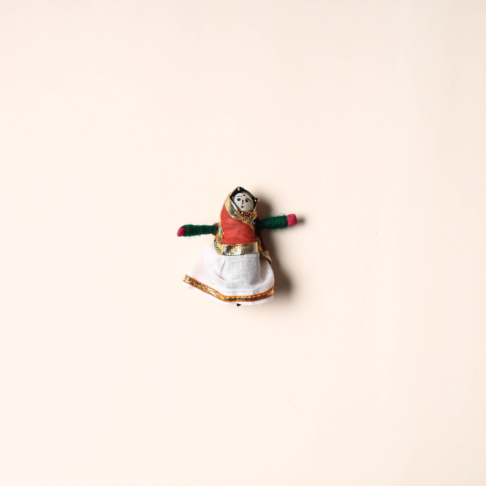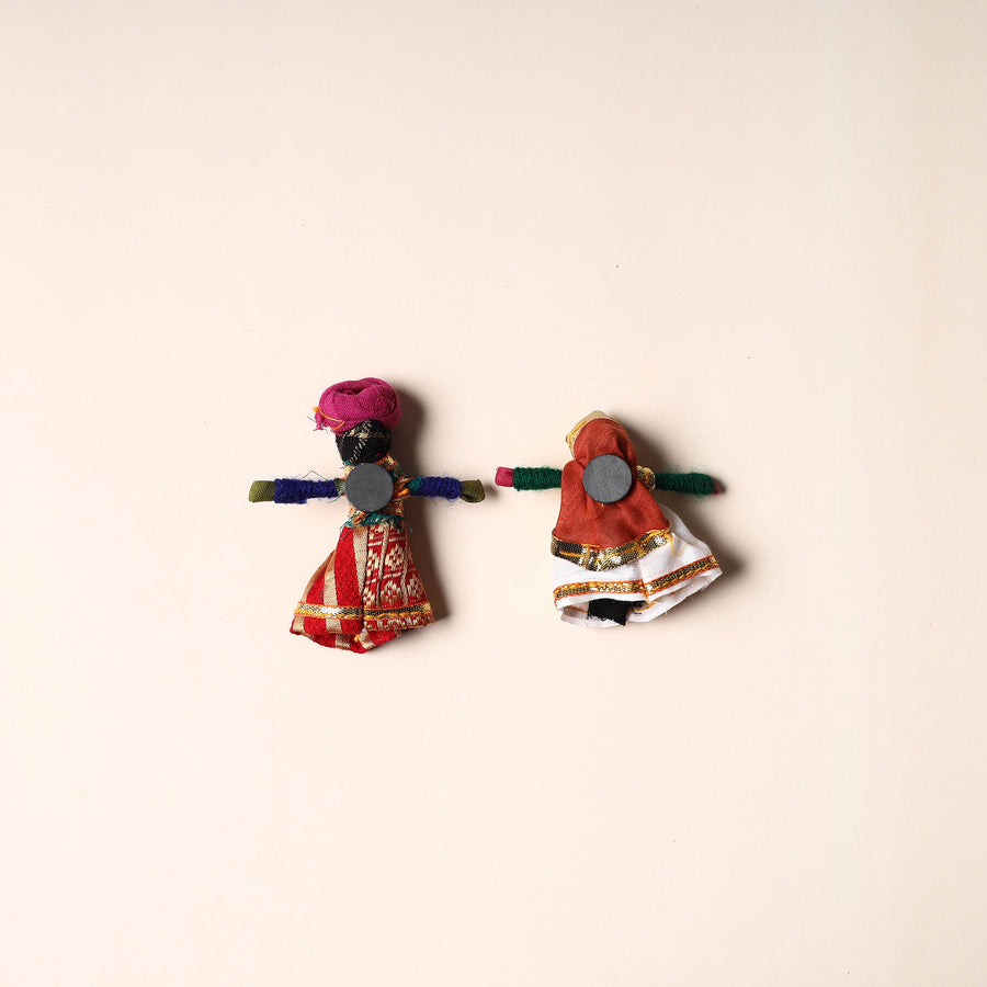 Celebrate the rich artistry of Rajasthan with this rajasthani puppet couple magnet Set (Set of 2), handcrafted by skilled artisans. Made from vibrant fabric and adorned with intricate gota patti work, these magnets add a cultural touch to your home or workspace. Whether placed on your fridge, workstation, or magnetic board, they bring a unique blend of tradition and charm, making them a delightful addition to any space.