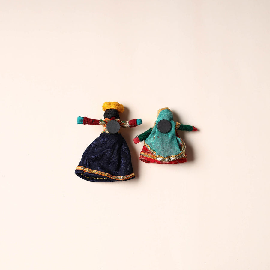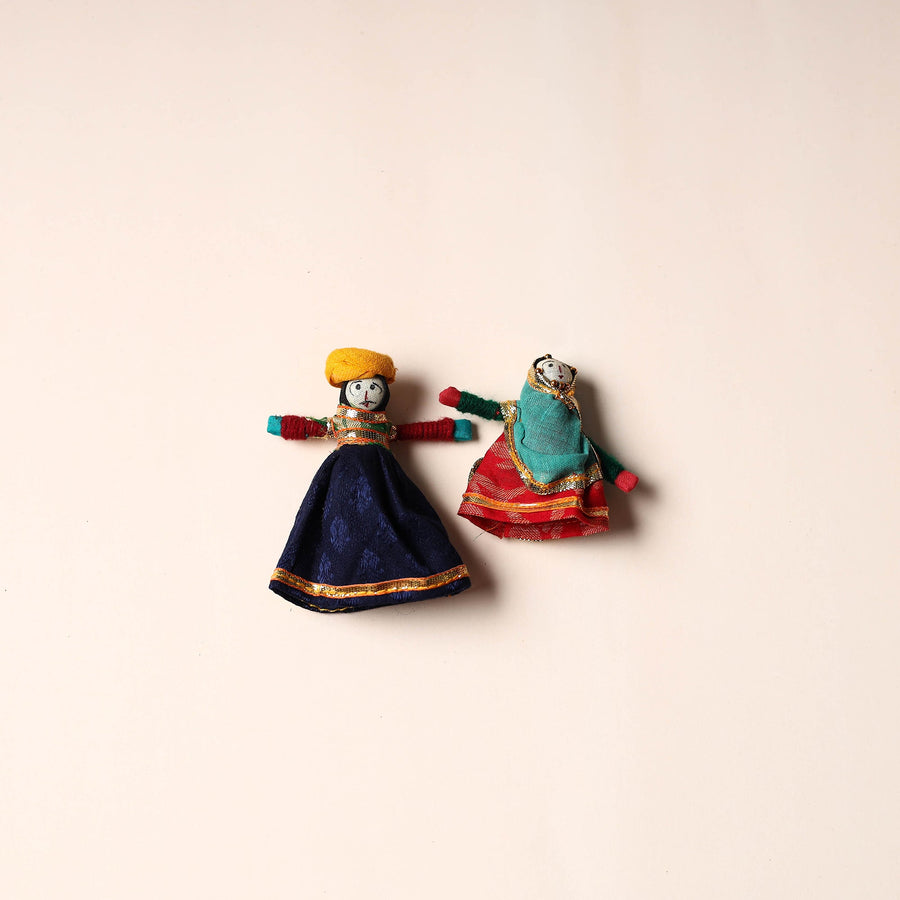 Celebrate the rich artistry of Rajasthan with this rajasthani puppet couple magnet Set (Set of 2), handcrafted by skilled artisans. Made from vibrant fabric and adorned with intricate gota patti work, these magnets add a cultural touch to your home or workspace. Whether placed on your fridge, workstation, or magnetic board, they bring a unique blend of tradition and charm, making them a delightful addition to any space.
