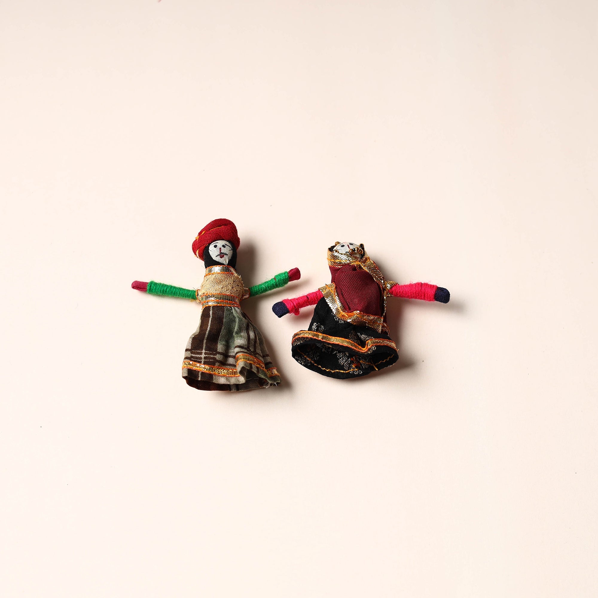 Celebrate the rich artistry of Rajasthan with this rajasthani puppet couple magnet Set (Set of 2), handcrafted by skilled artisans. Made from vibrant fabric and adorned with intricate gota patti work, these magnets add a cultural touch to your home or workspace. Whether placed on your fridge, workstation, or magnetic board, they bring a unique blend of tradition and charm, making them a delightful addition to any space.