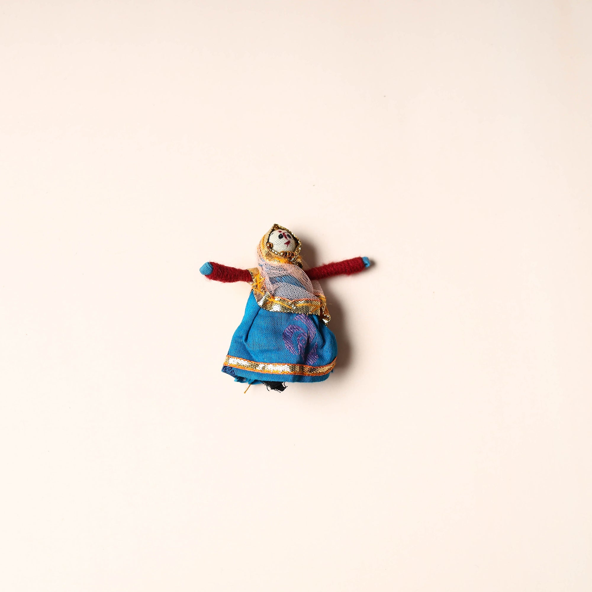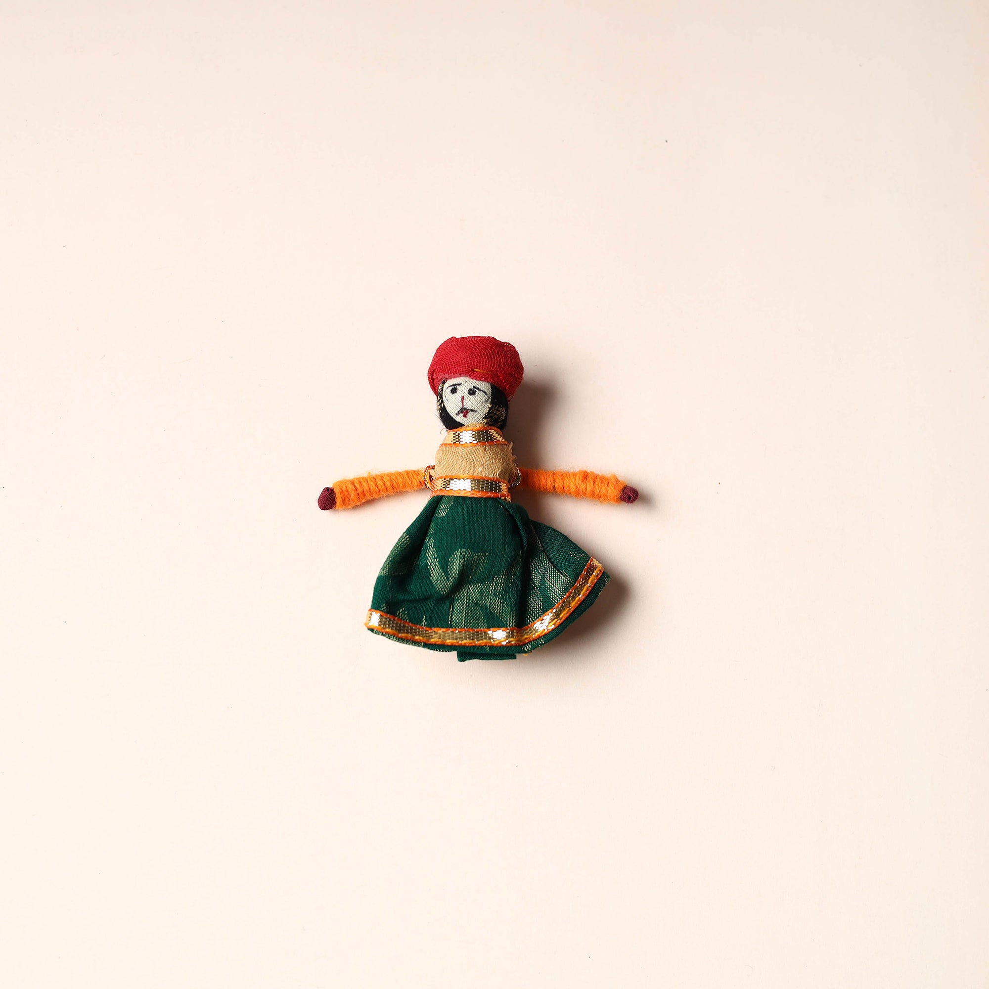 Celebrate the rich artistry of Rajasthan with this rajasthani puppet couple magnet Set (Set of 2), handcrafted by skilled artisans. Made from vibrant fabric and adorned with intricate gota patti work, these magnets add a cultural touch to your home or workspace. Whether placed on your fridge, workstation, or magnetic board, they bring a unique blend of tradition and charm, making them a delightful addition to any space.