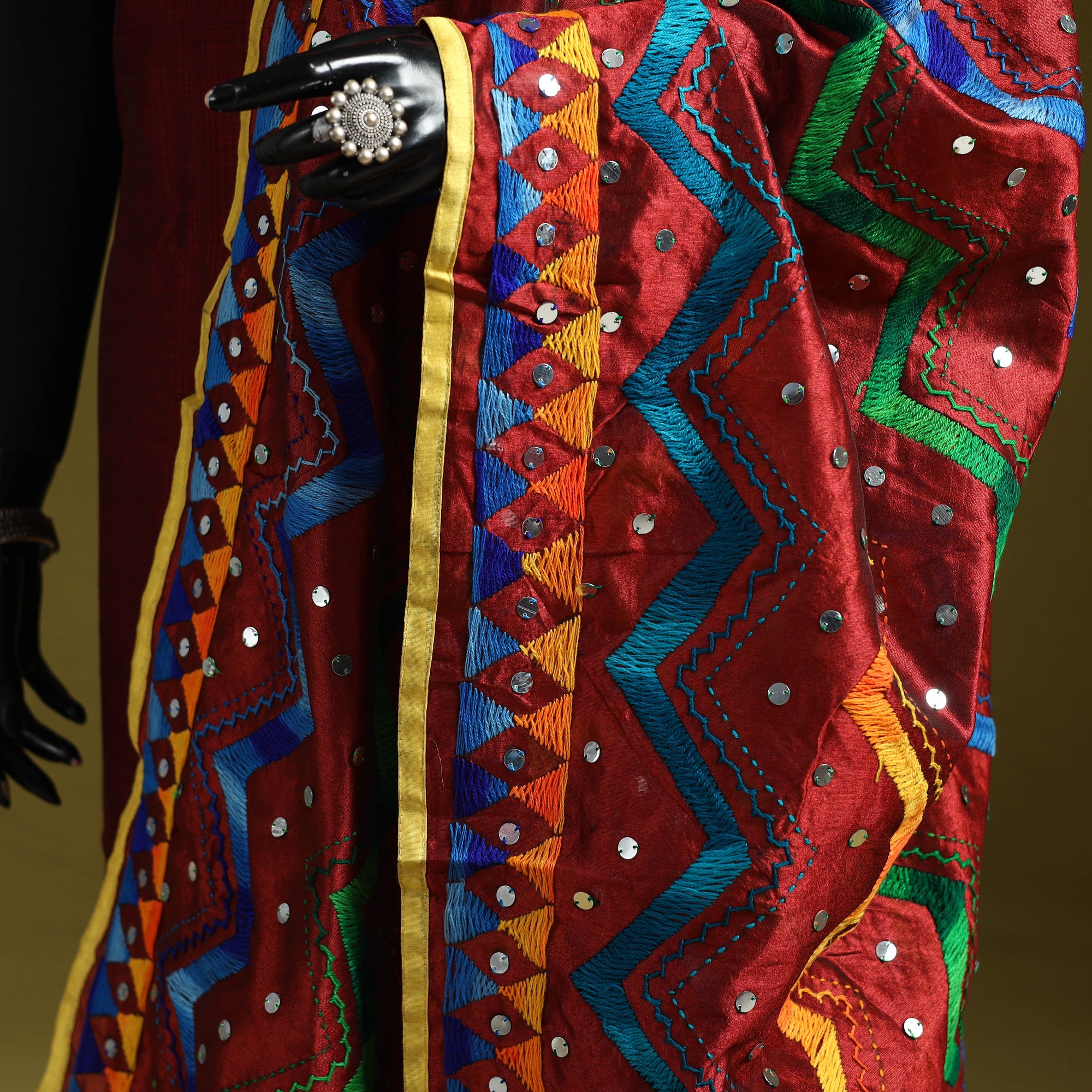 • Ranihati Chanderi Silk Zig Zag Hand Embroidery Dupatta 17
