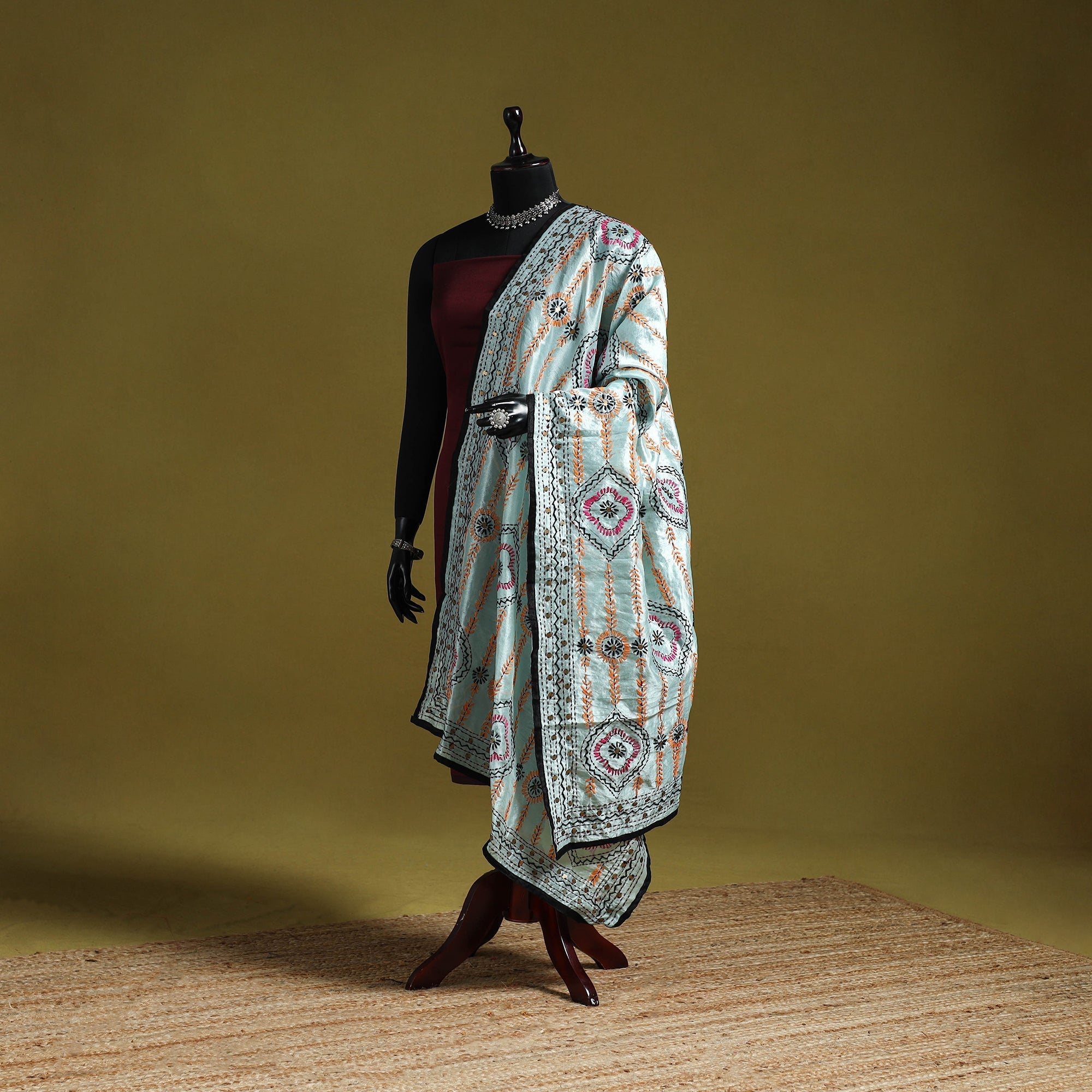 • Ranihati chapa work chanderi silk hand embroidery dupatta