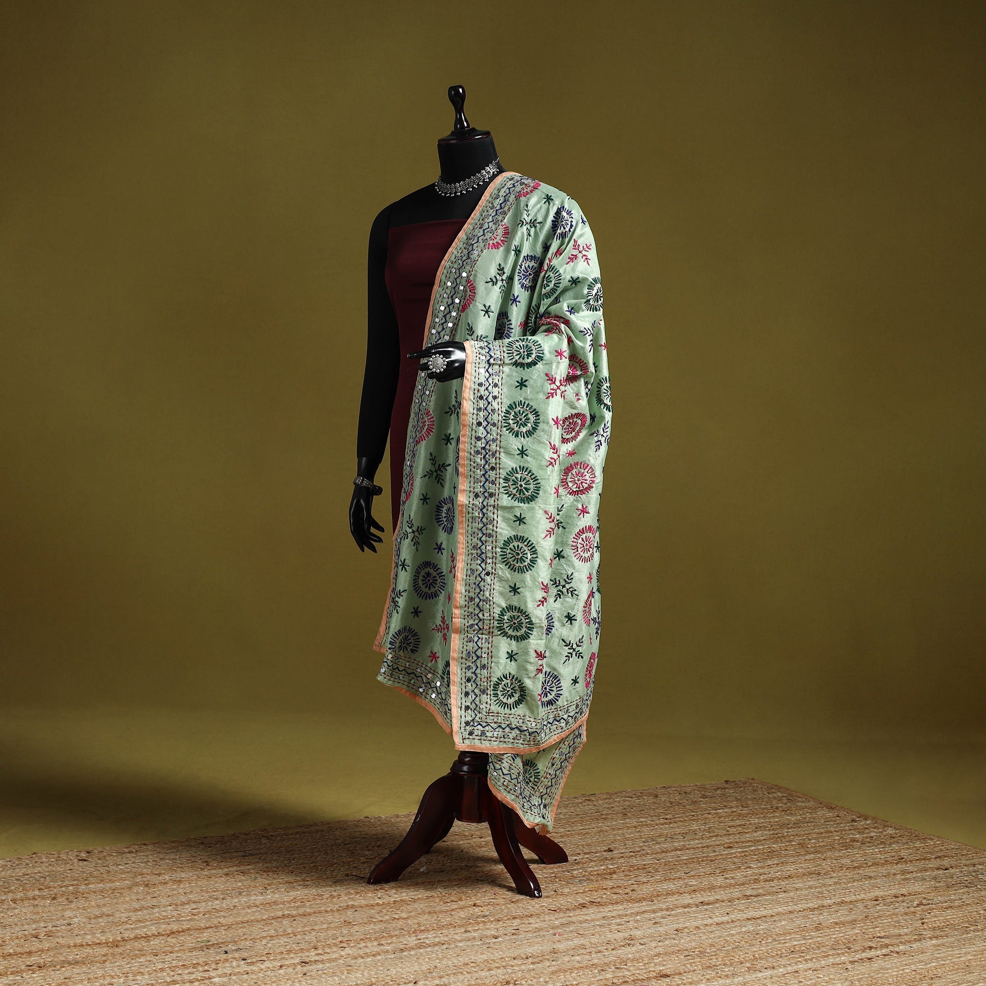 • Ranihati chapa work chanderi silk hand embroidery dupatta