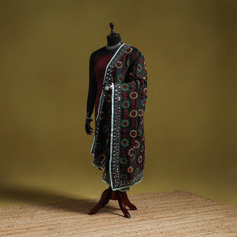 Black - Ranihati Chapa Work Chanderi Silk Hand Embroidery Dupatta 121