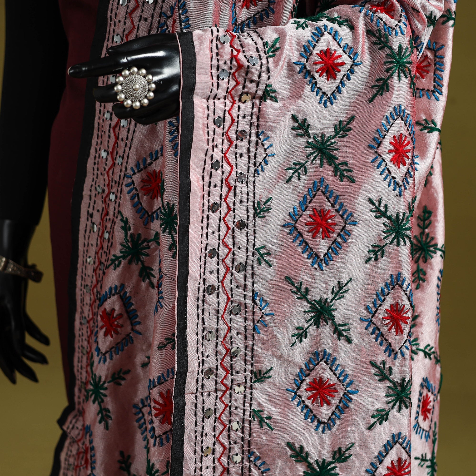 Pink - Ranihati Chapa Work Chanderi Silk Hand Embroidery Dupatta 132
