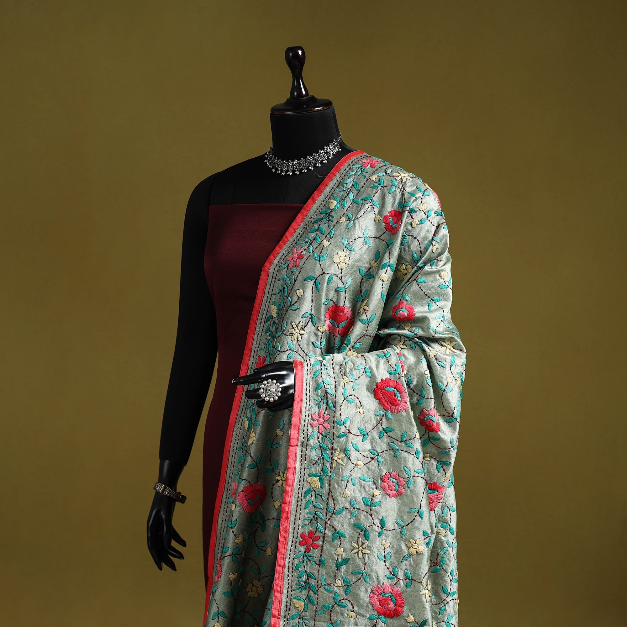 • Ranihati chapa work chanderi silk hand embroidery dupatta