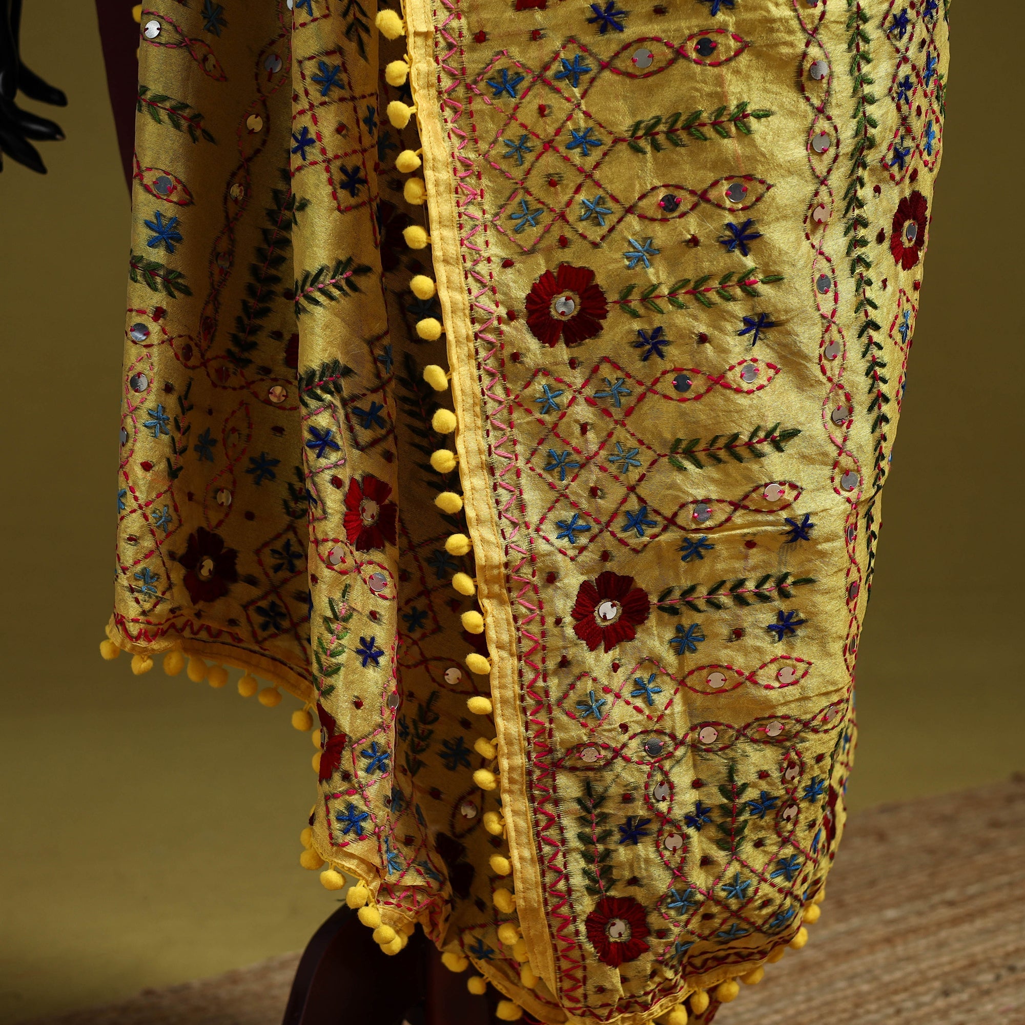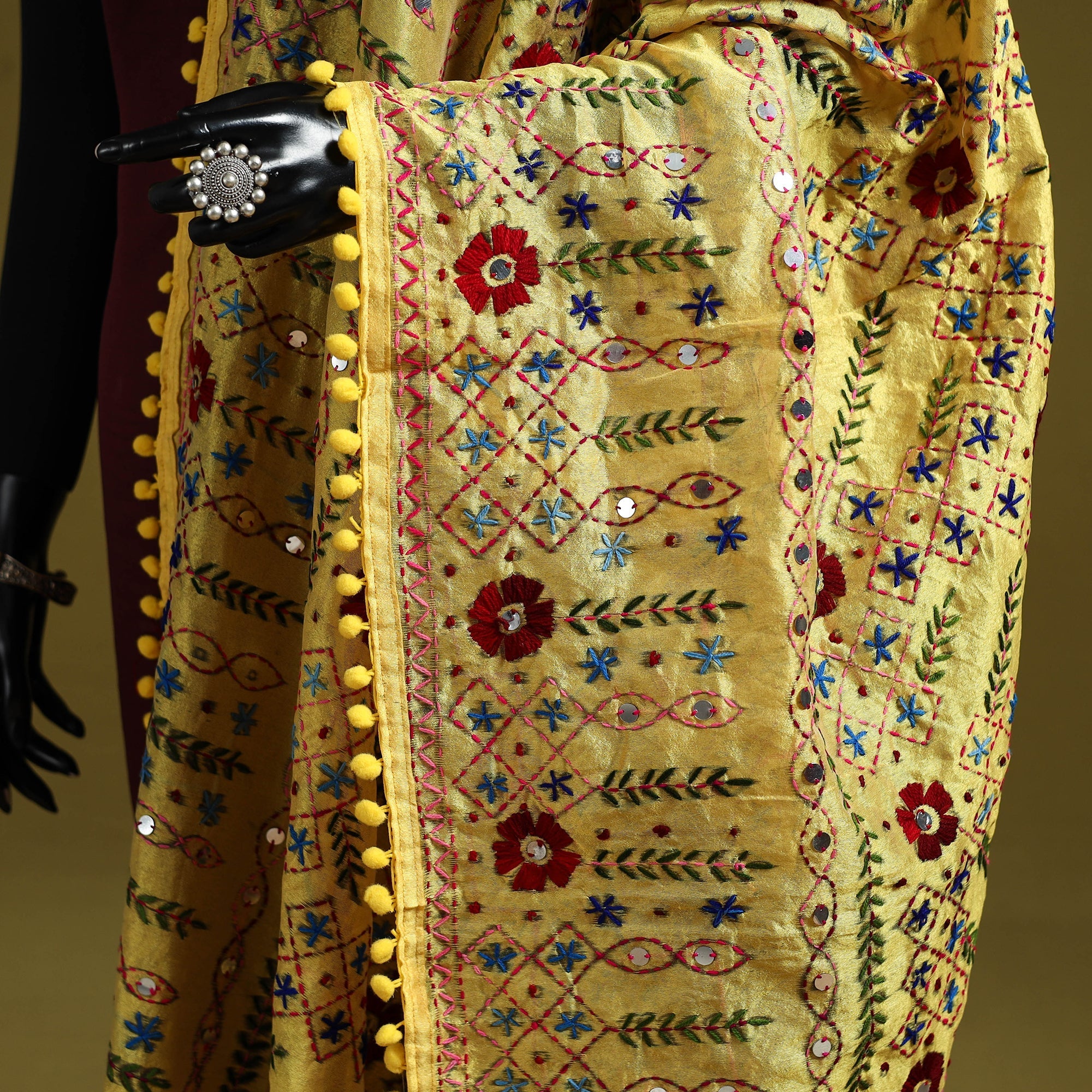 Yellow - Ranihati Chapa Work Chanderi Silk Hand Embroidery Dupatta 135