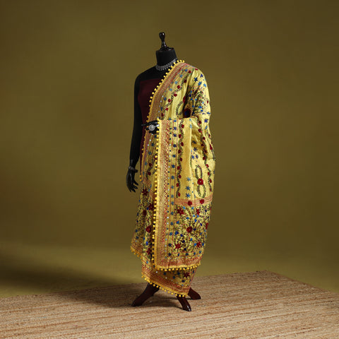Yellow - Ranihati Chapa Work Chanderi Silk Hand Embroidery Dupatta 135