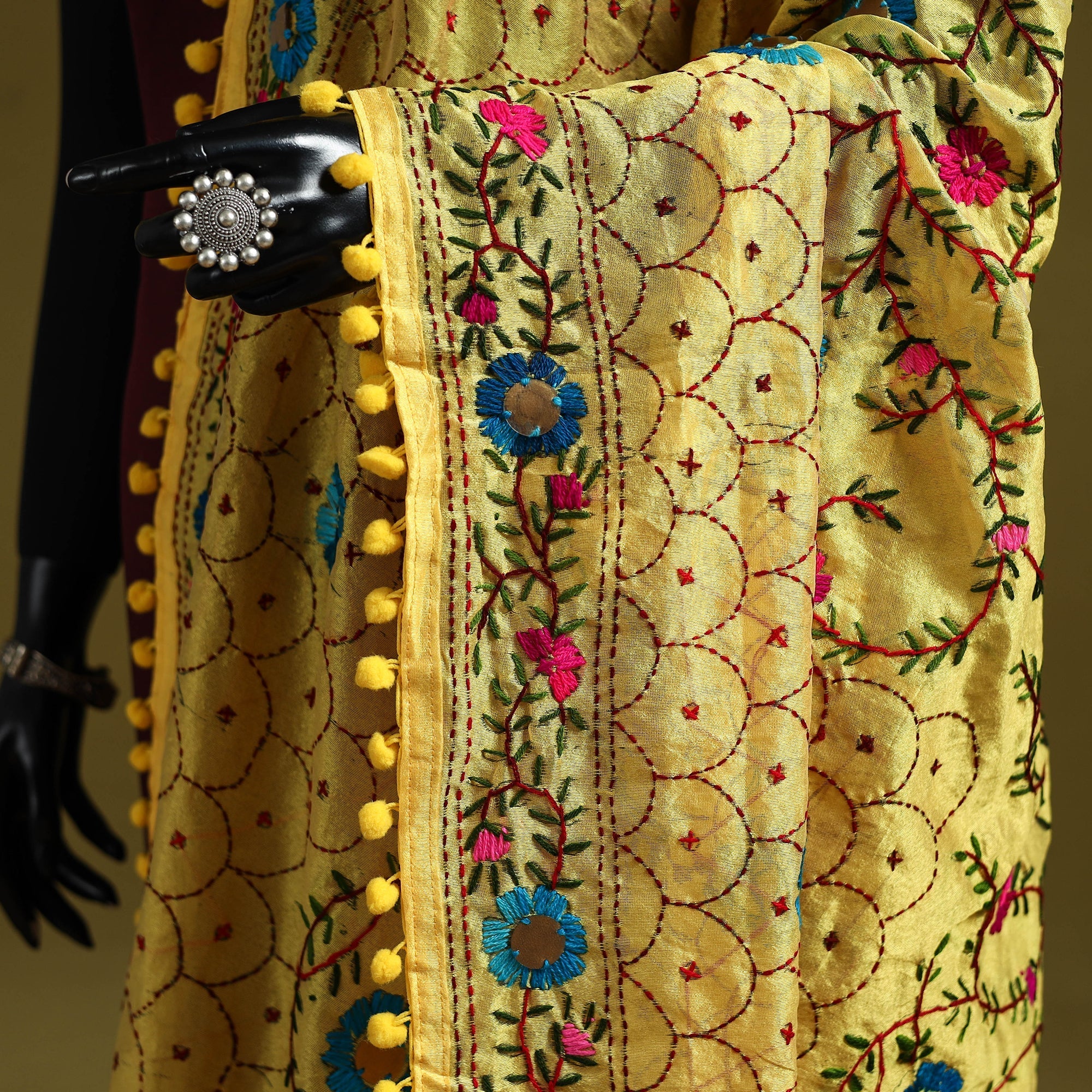 Yellow - Ranihati Chapa Work Chanderi Silk Hand Embroidery Dupatta 135