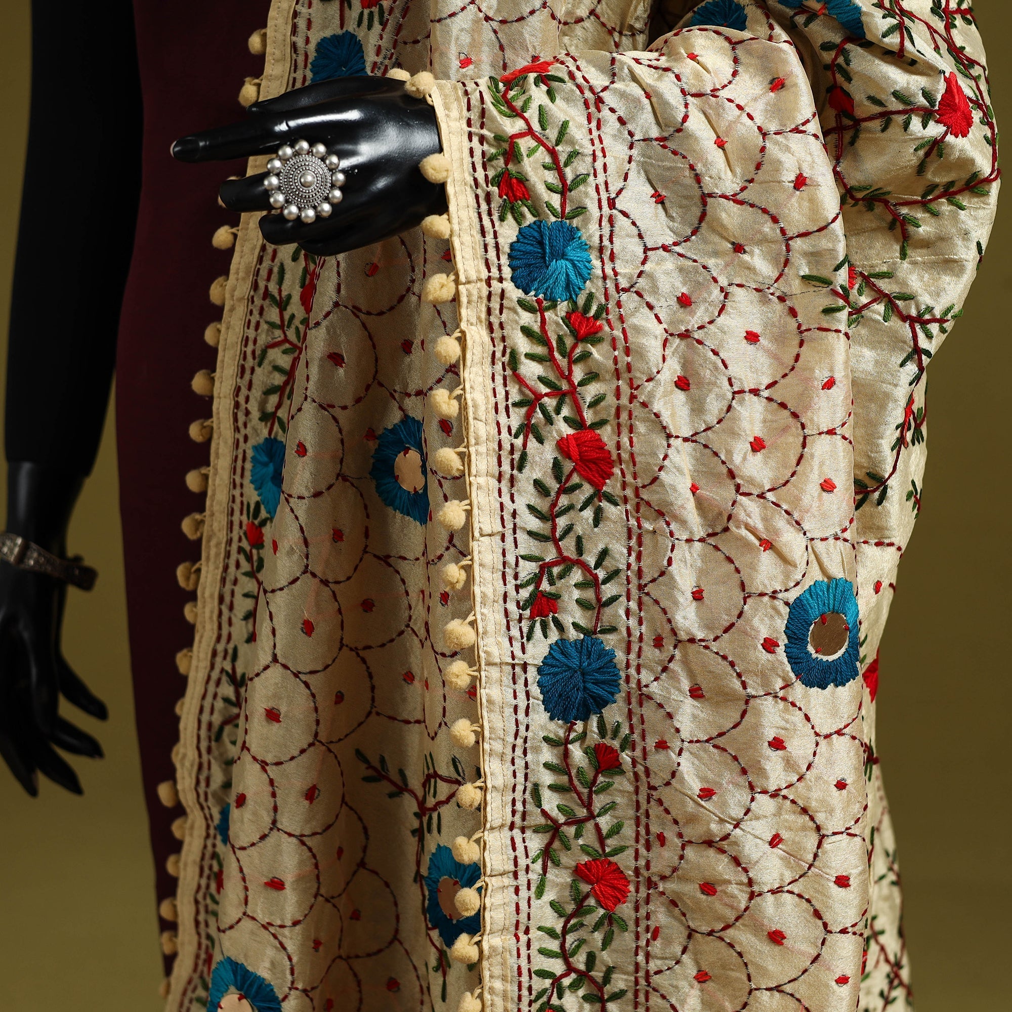 White - Ranihati Chapa Work Chanderi Silk Hand Embroidery Dupatta 131