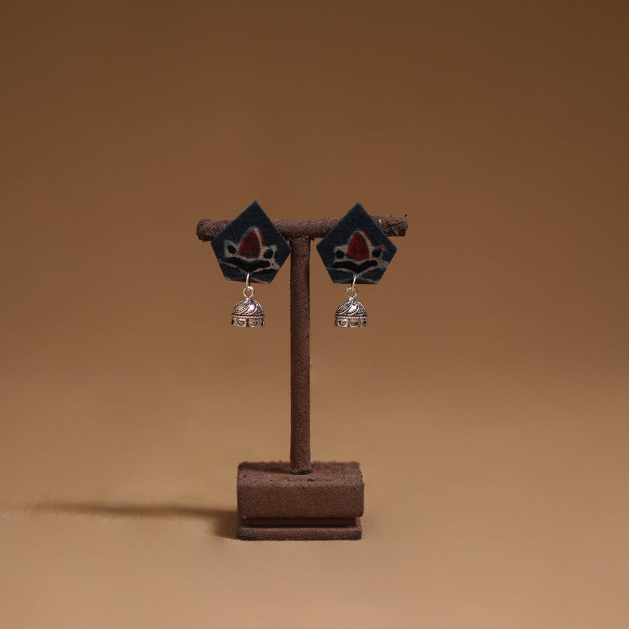 Handmade fabric earrings with german silver jhumki is attached at the end, that enhances its charm. Perfect for everyday wear or special occasions, these earrings blend traditional style with a graceful touch.