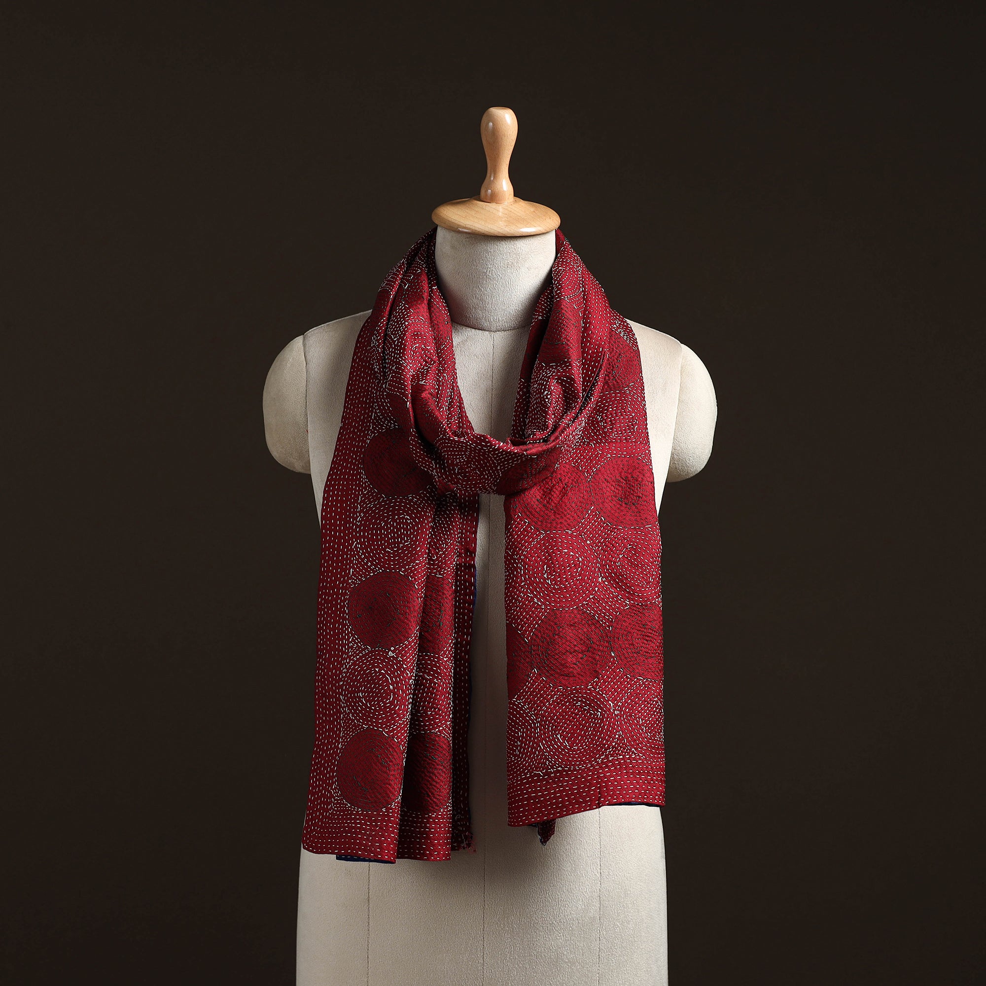 Kantha handwork art silk reversible stole crafted by the women of West Bengal with sustainable stitching and weaving methods that can only be found in the rural regions of Bengal. Perfect for casual wear, this stole pairs well with a wide range of outfits.
