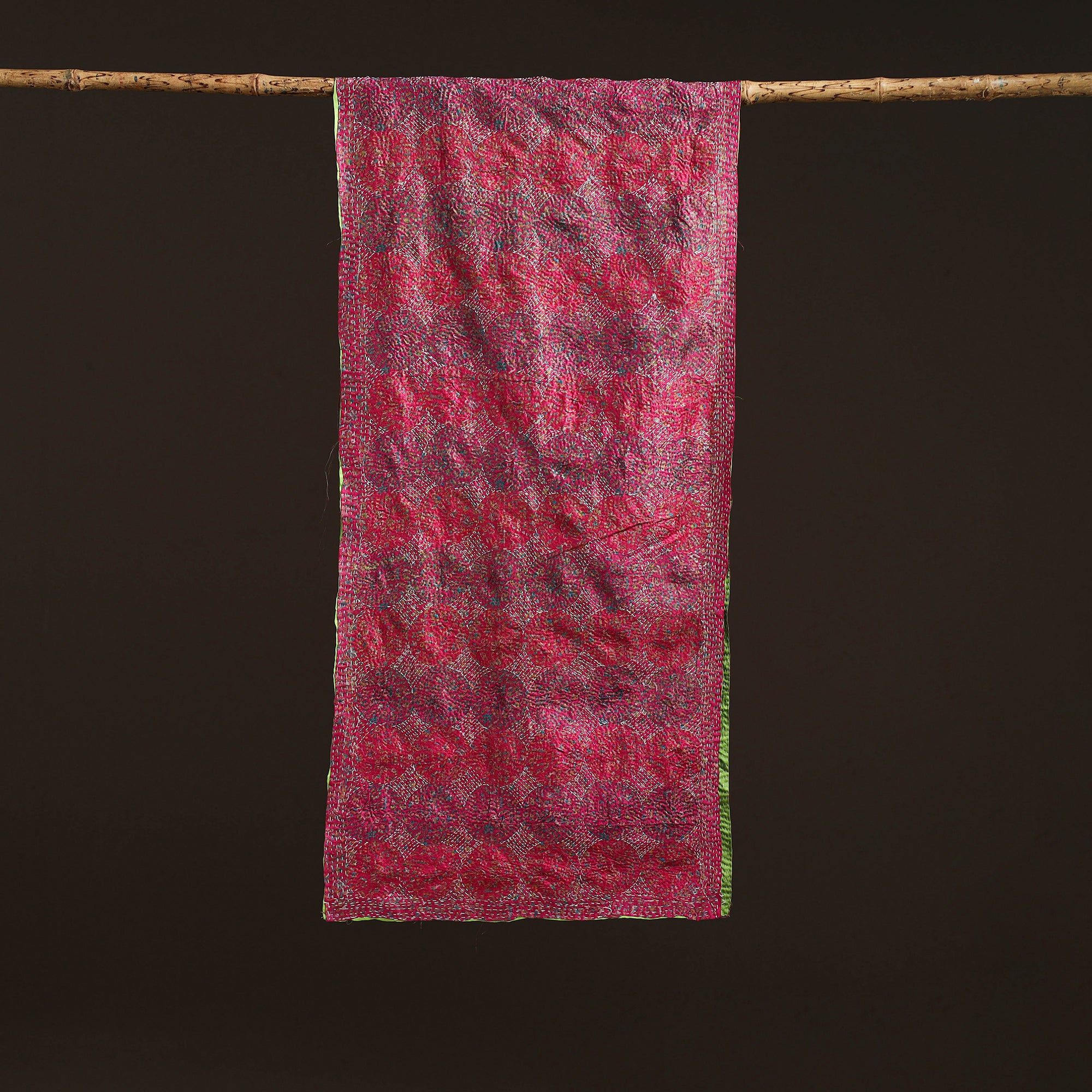 Kantha handwork art silk reversible stole crafted by the women of West Bengal with sustainable stitching and weaving methods that can only be found in the rural regions of Bengal. Perfect for casual wear, this stole pairs well with a wide range of outfits.