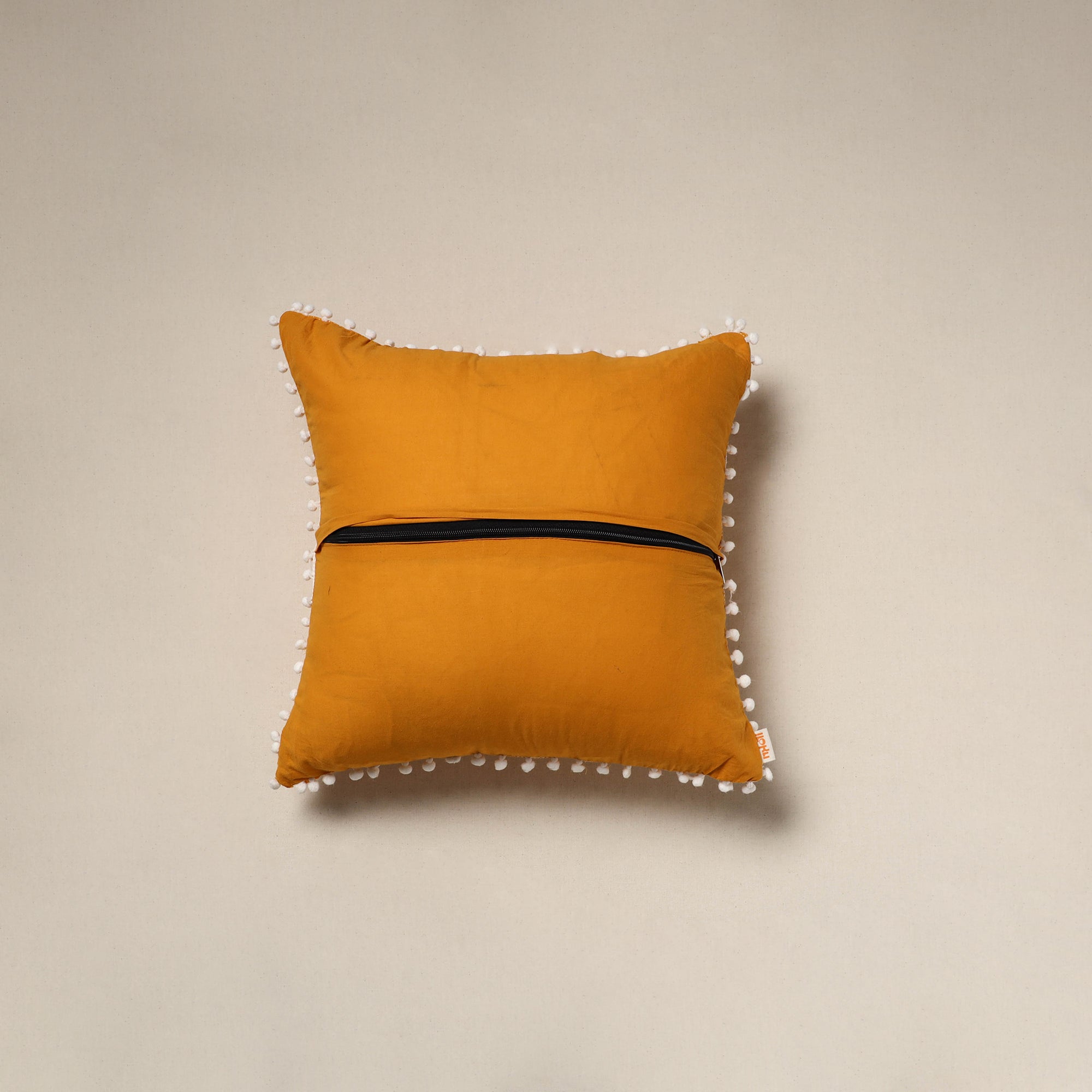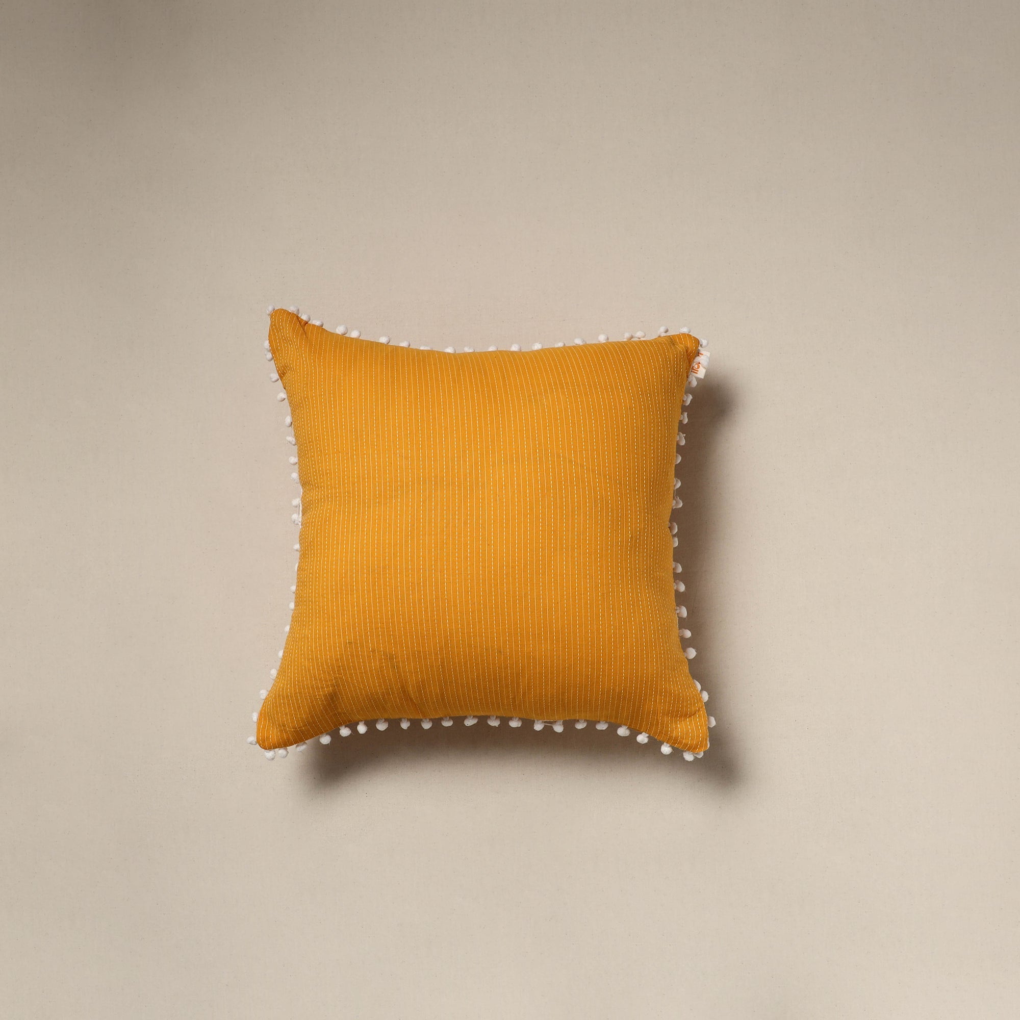 This yellow running stitch plain cotton cushion cover is made from soft cotton and designed with neat stitching and pom-poms around the edges. Its simple yet elegant look makes it a perfect choice for any room. Place it on your sofa, chair, or bed to add a subtle touch of style and comfort to your space.