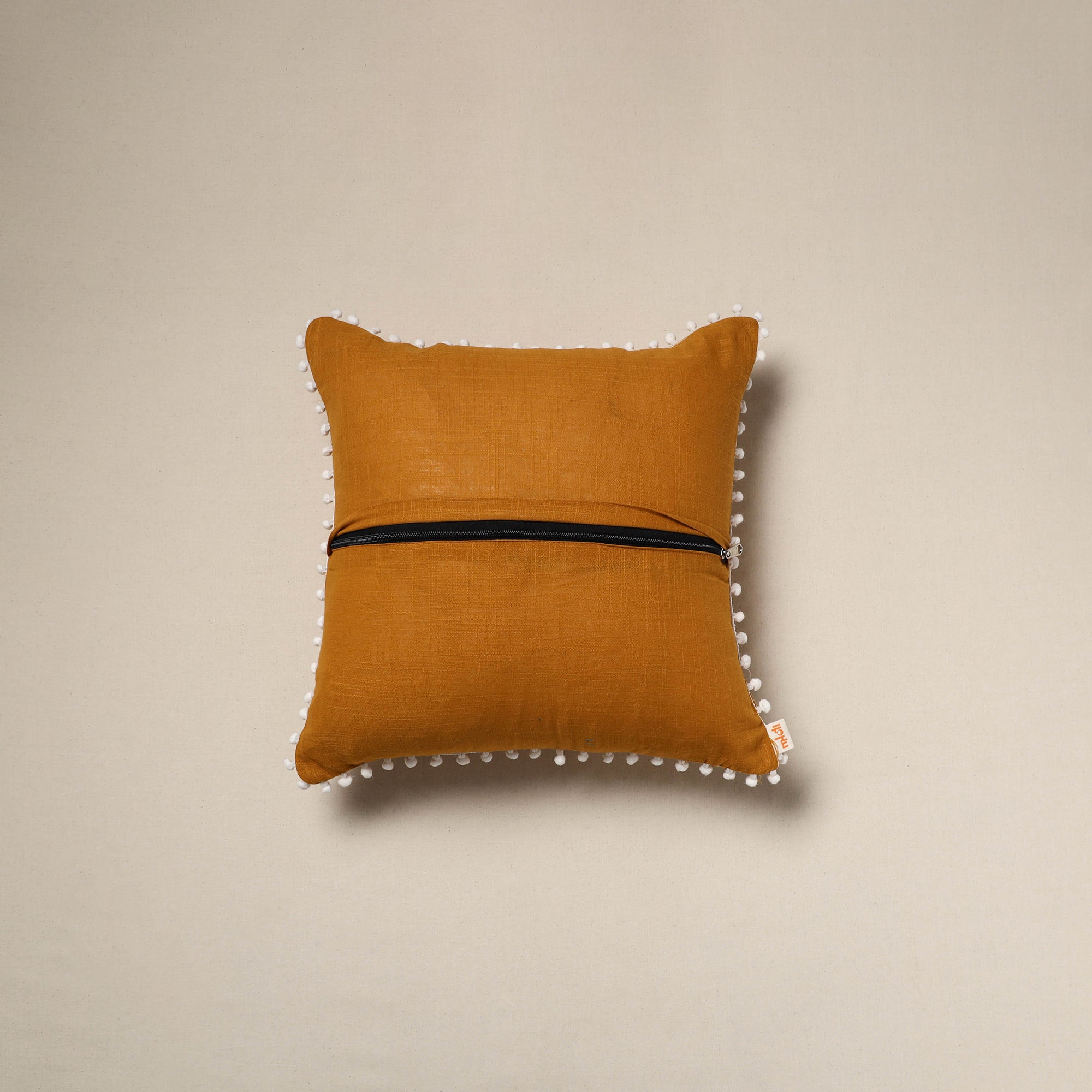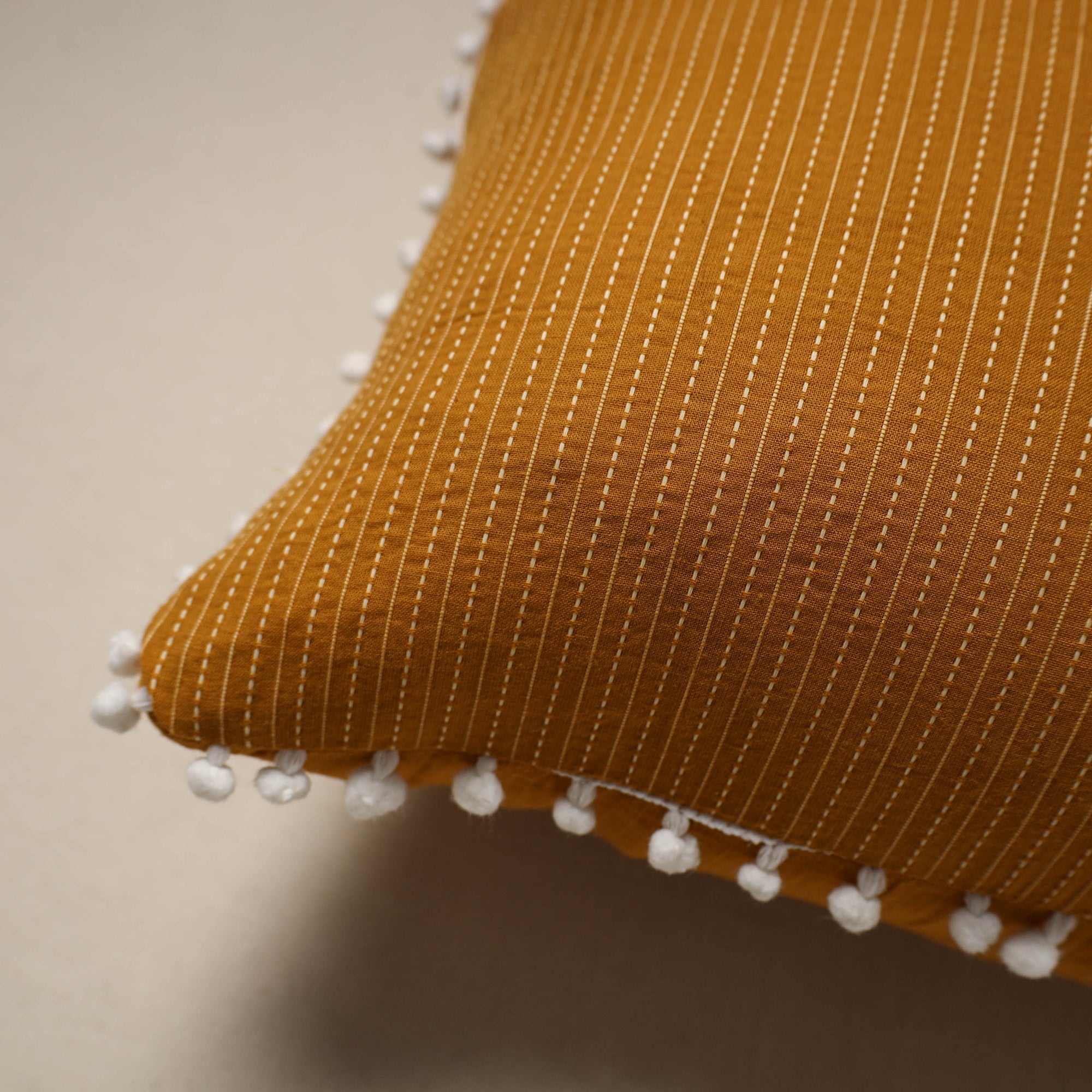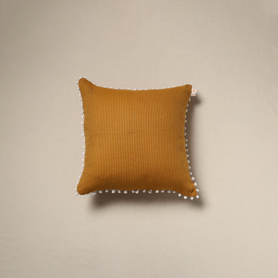 This yellow running stitch plain cotton cushion cover is made from soft cotton and designed with neat stitching and pom-poms around the edges. Its simple yet elegant look makes it a perfect choice for any room. Place it on your sofa, chair, or bed to add a subtle touch of style and comfort to your space.