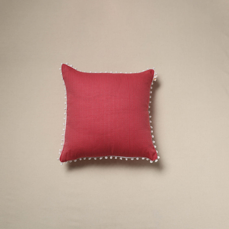 Red - Running Stitch Plain Cotton Cushion Cover 08