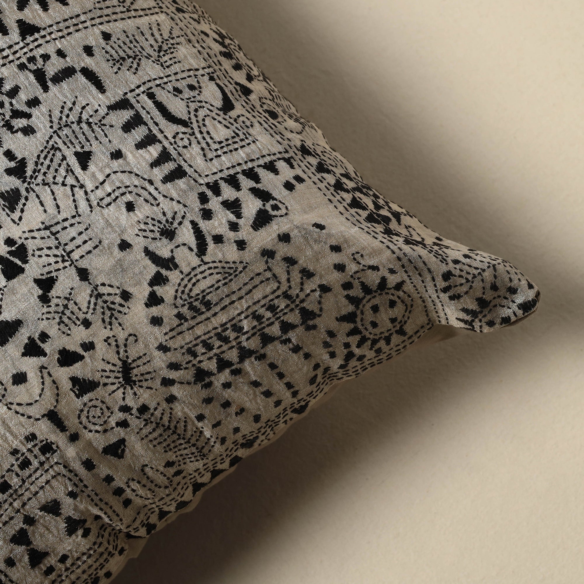 Running stitch plain cushion cover, crafted from cotton and traditional Indian handmade textiles. It blends artistry with comfort, making it perfect for your sofa, bed or lounge area.