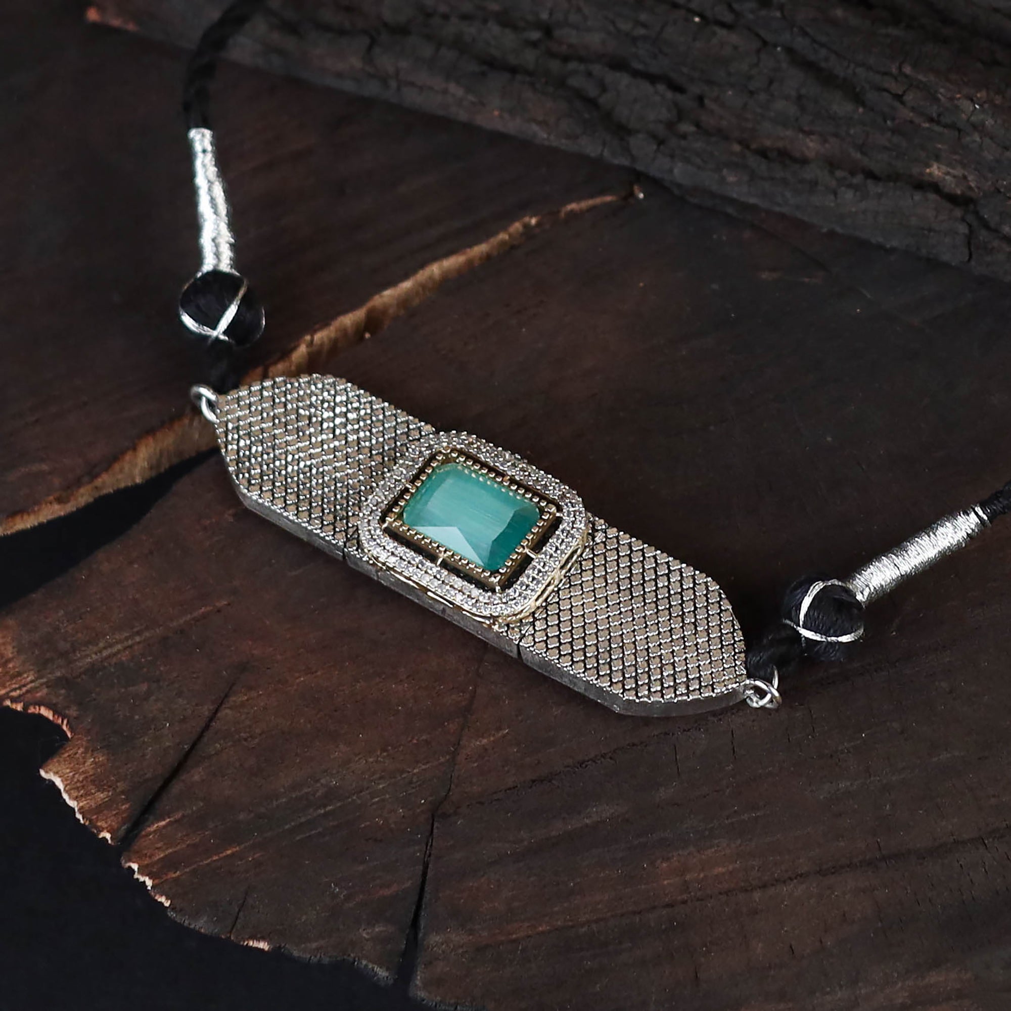 This multicolor german silver-plated handcrafted necklace set features a blend of oxidised metal, tiny pearls, stones, and fine detailing. Known for its durability and subtle sheen, German silver lends an elegant charm to the set. Paired with matching earrings, its silver tones beautifully complement both traditional Indian ensembles and contemporary Western wear. A thoughtful gift for your loved ones, it brings a graceful touch of tradition to every moment.