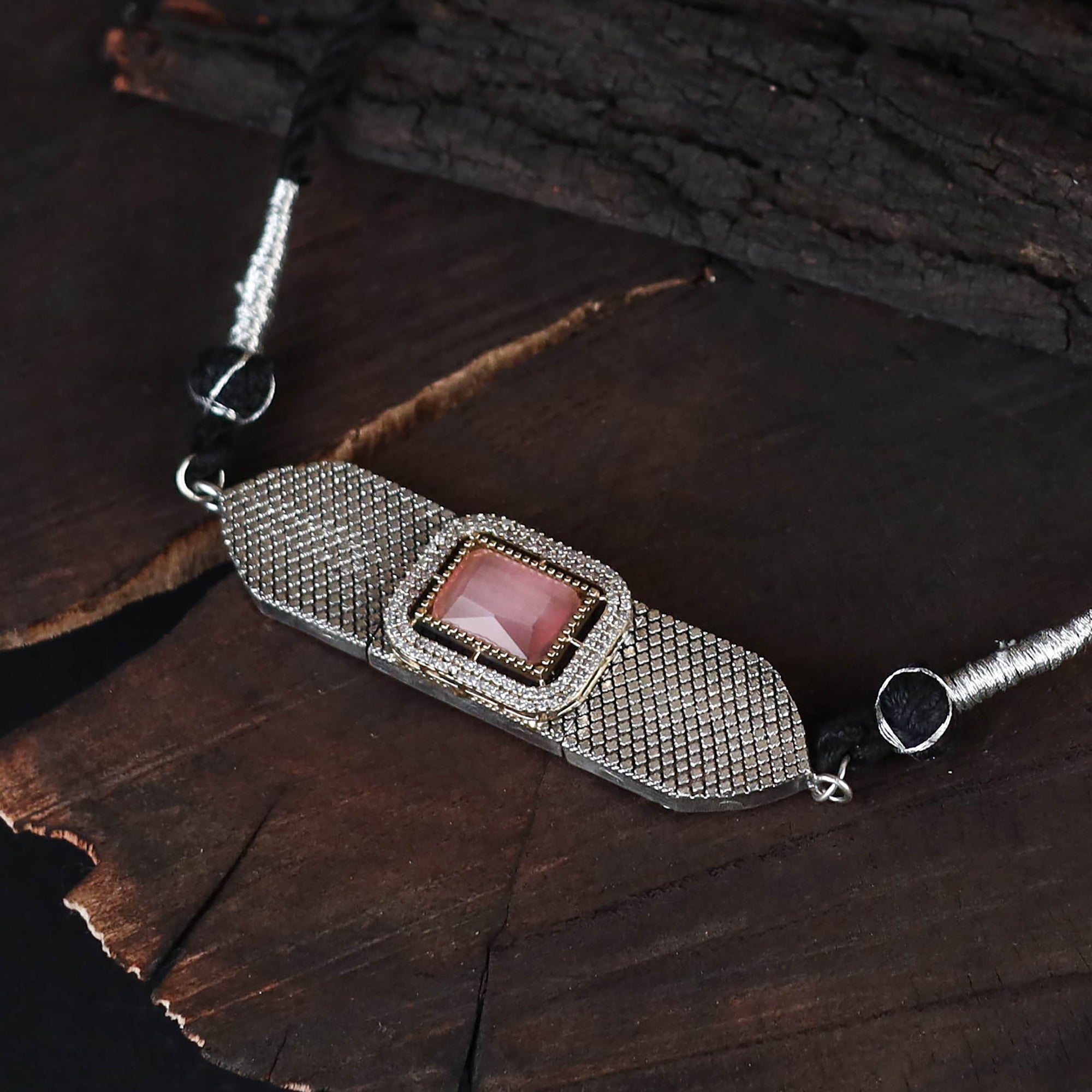 This white german silver-plated handcrafted necklace set features a blend of oxidised metal, tiny pearls, stones, and fine detailing. Known for its durability and subtle sheen, German silver lends an elegant charm to the set. Paired with matching earrings, its silver tones beautifully complement both traditional Indian ensembles and contemporary Western wear. A thoughtful gift for your loved ones, it brings a graceful touch of tradition to every moment.
