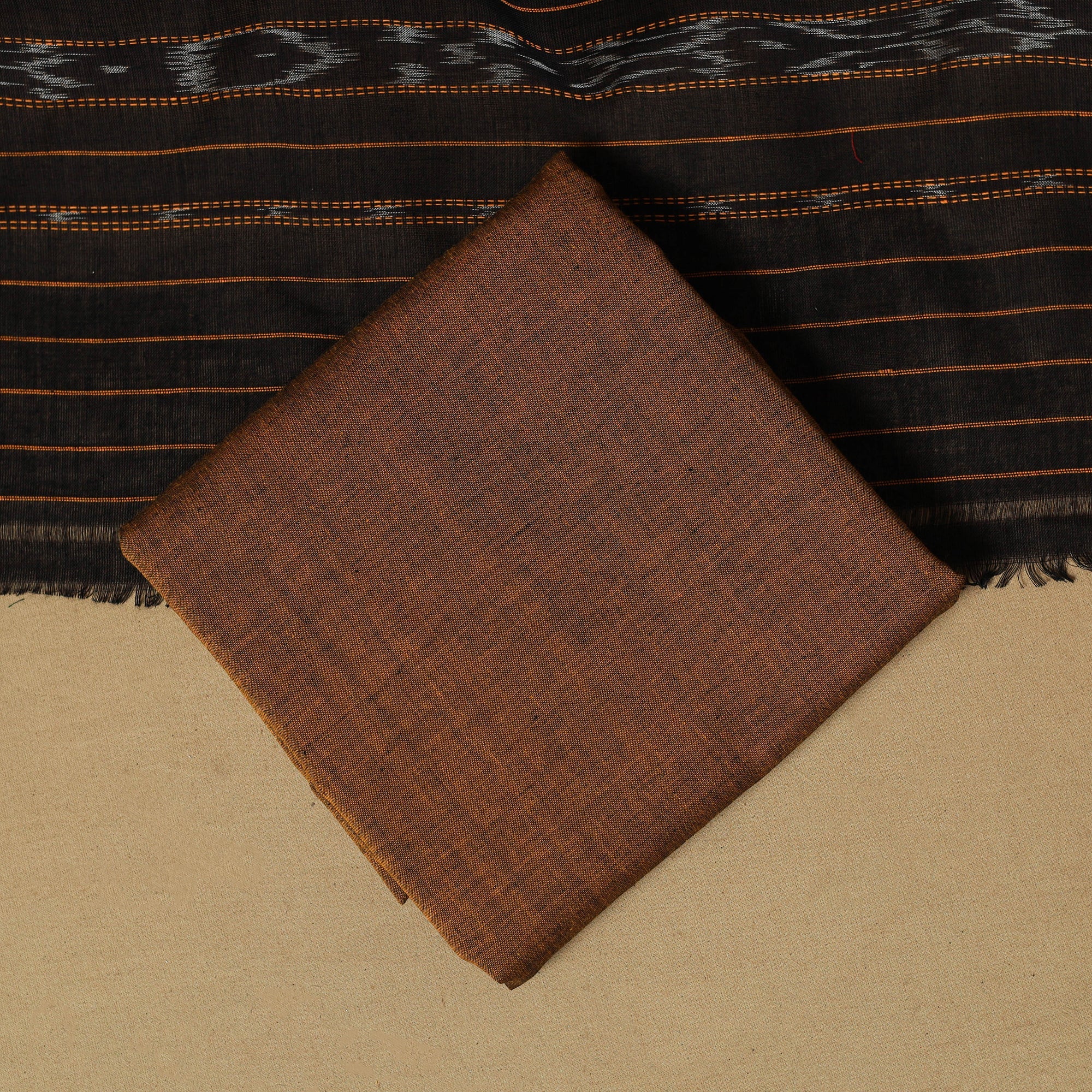 Black - Sambalpuri Ikat Handloom Cotton 3pc Unstitched Dress Material 16