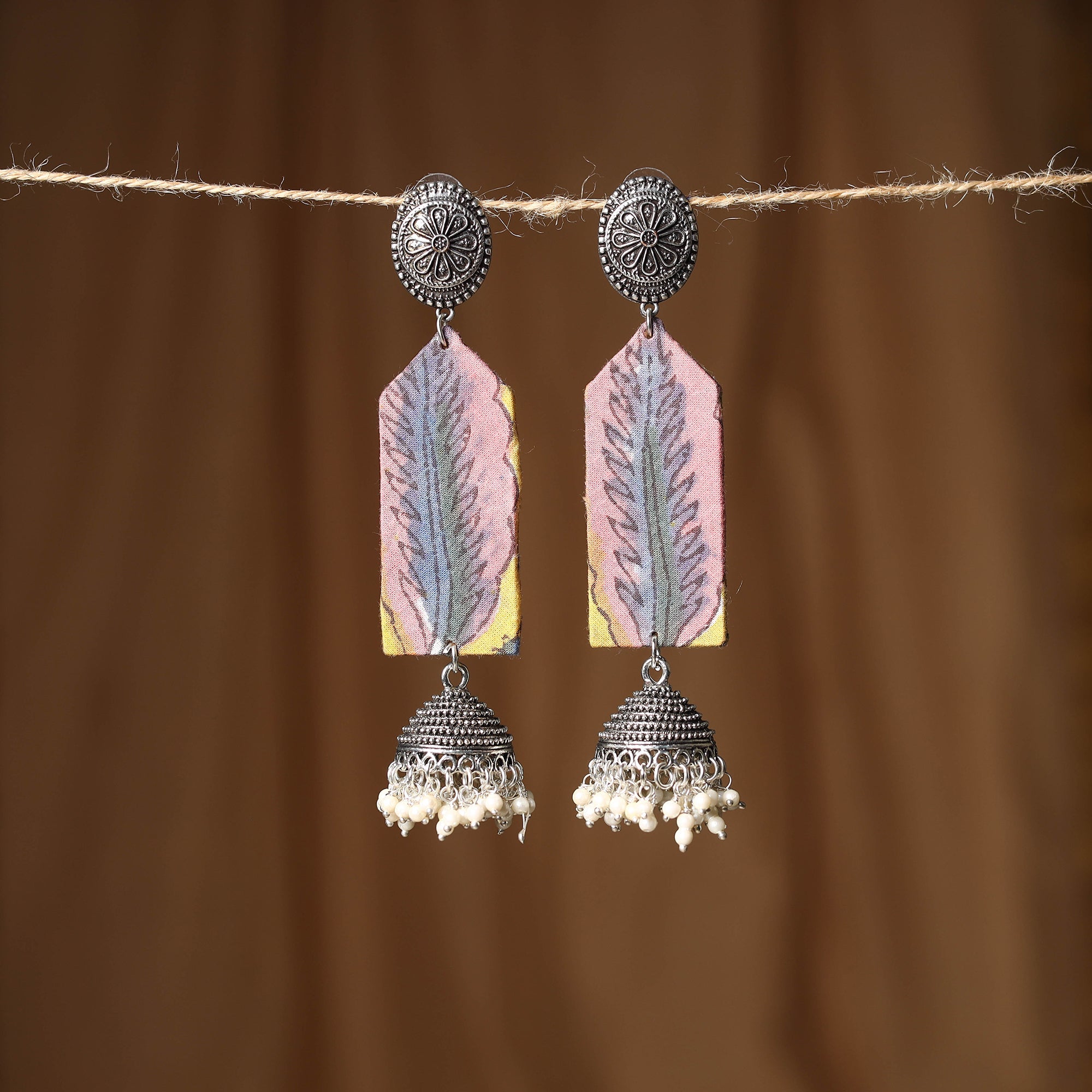 Add a unique flair to your outfit with these pink handmade fabric earrings. A German silver jhumki is attached at the end, adorned with beads that enhance its charm. Perfect for everyday wear or special occasions, these earrings blend traditional style with a playful touch.
