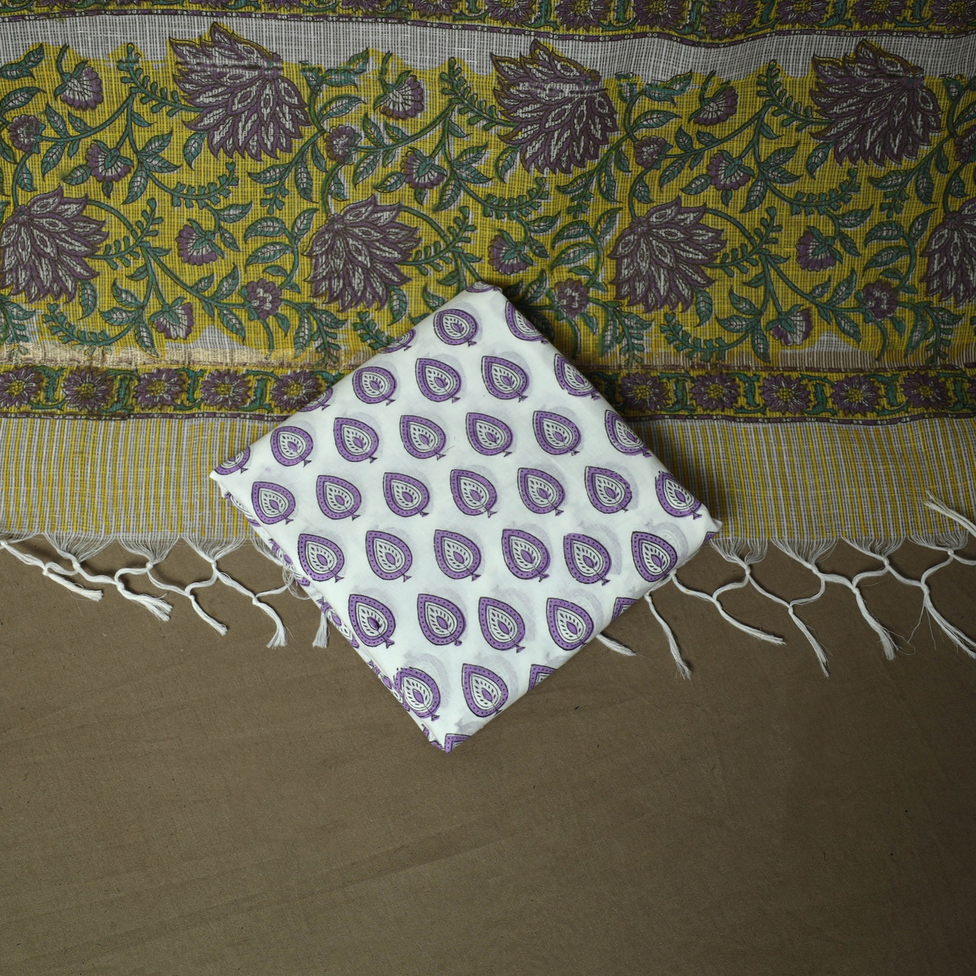 • Sanganeri block print cotton 3pc unstitched dress material