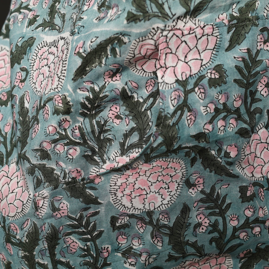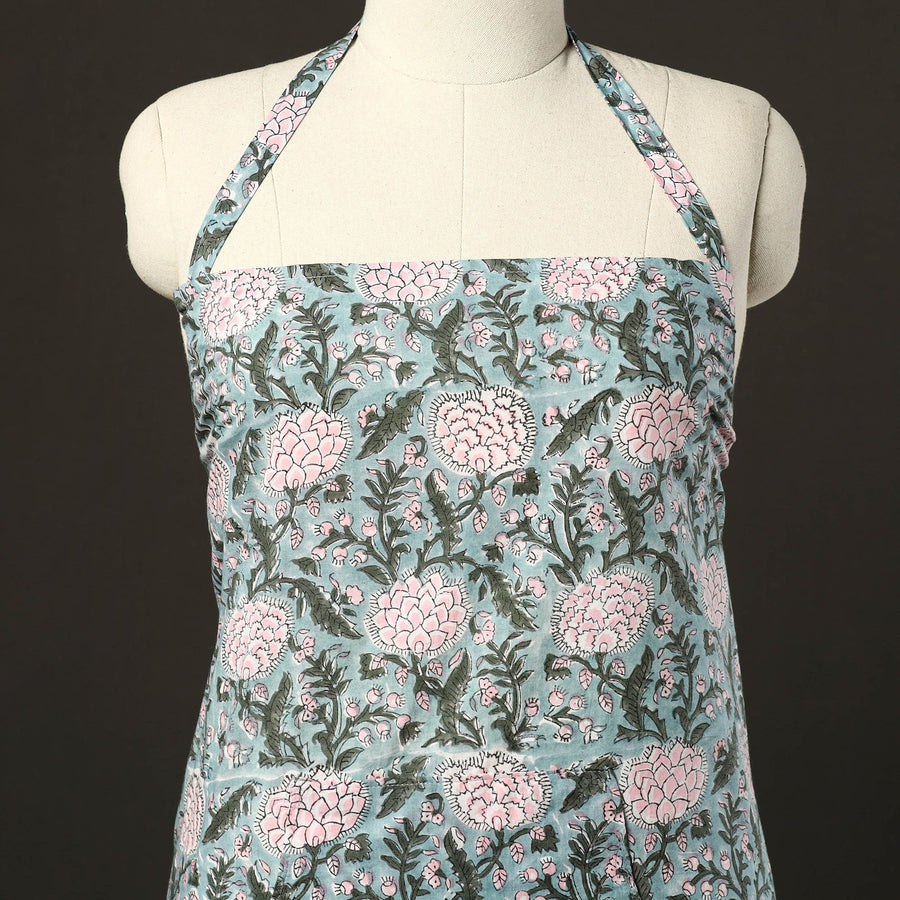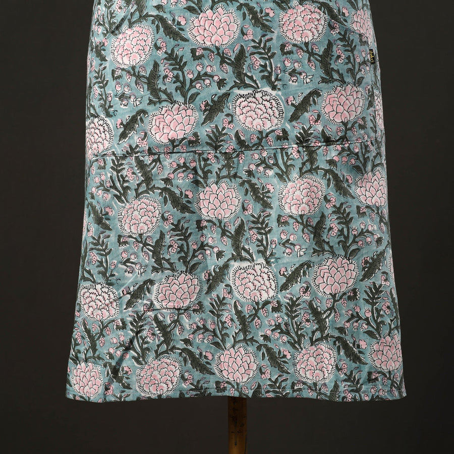This cotton apron with pocket, crafted with traditional blue sanganeri block printing, combines cultural artistry with everyday functionality. Adorned with sanganeri prints it features a convenient front pocket and adjustable straps for a comfortable fit. Perfect for cooking, baking, or grilling, this apron adds style and convenience to your kitchen essentials.