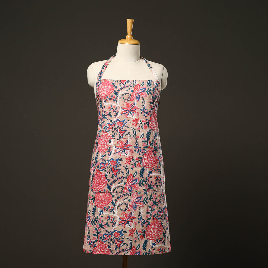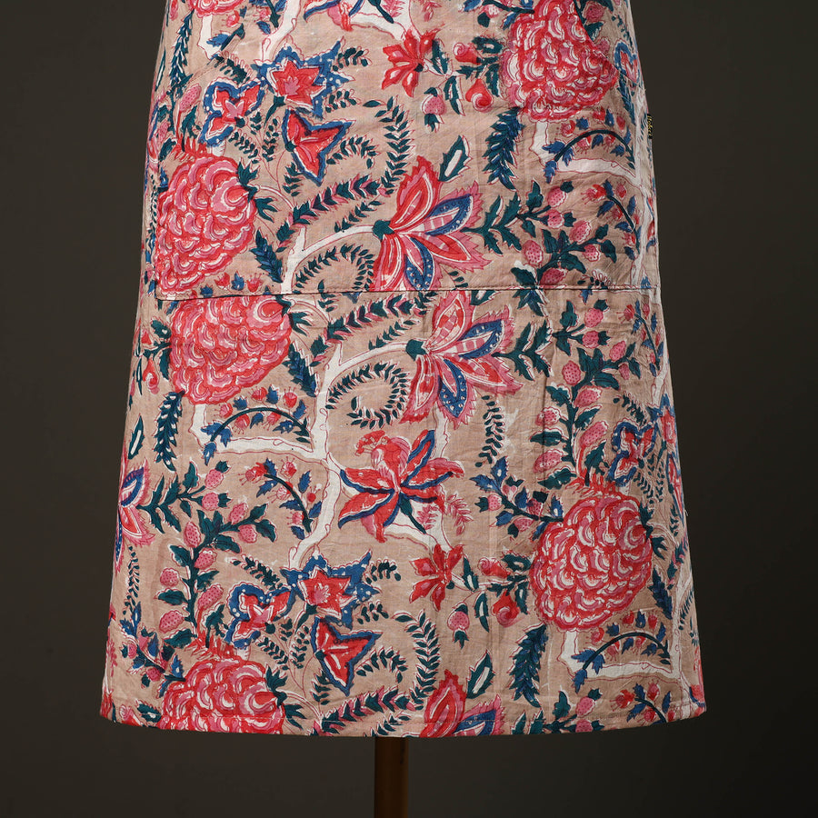 Elevate your kitchen style with this pink sanganeri block print cotton apron. It features breathable cotton, an adjustable neck strap, and a handy front pocket. Perfect for home chefs and bakers. Lightweight and functional, it keeps you protected from spills with artisanal charm.