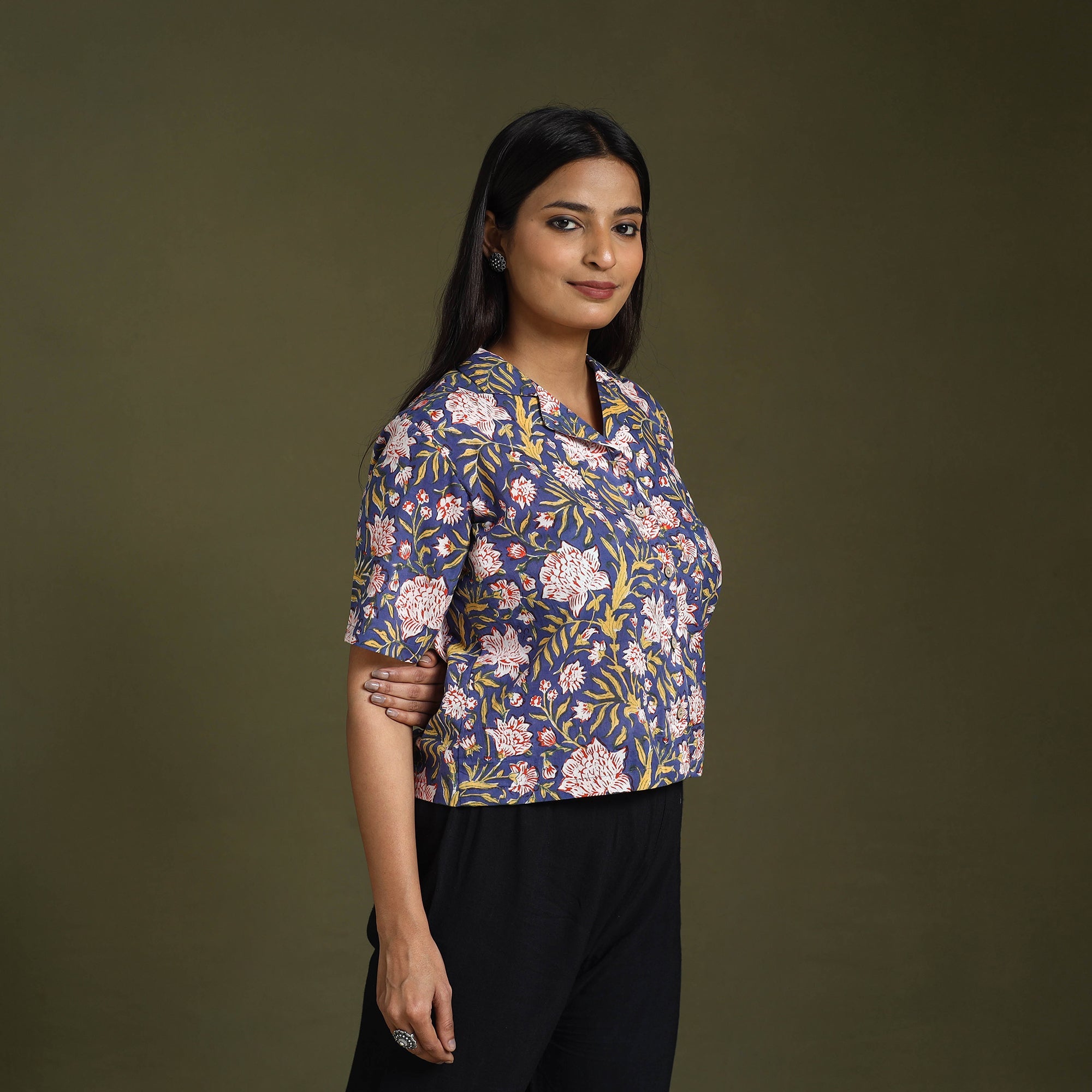 Infuse ethnic charm into your wardrobe with this lime blue sanganeri block print cotton crop top. Designed using heritage techniques, it features a stylish front button placket. The soft, airy cotton fabric ensures you stay cool and relaxed during outings or festivals. Its detailed patterns and smart fit add a refreshing touch to modern fashion.