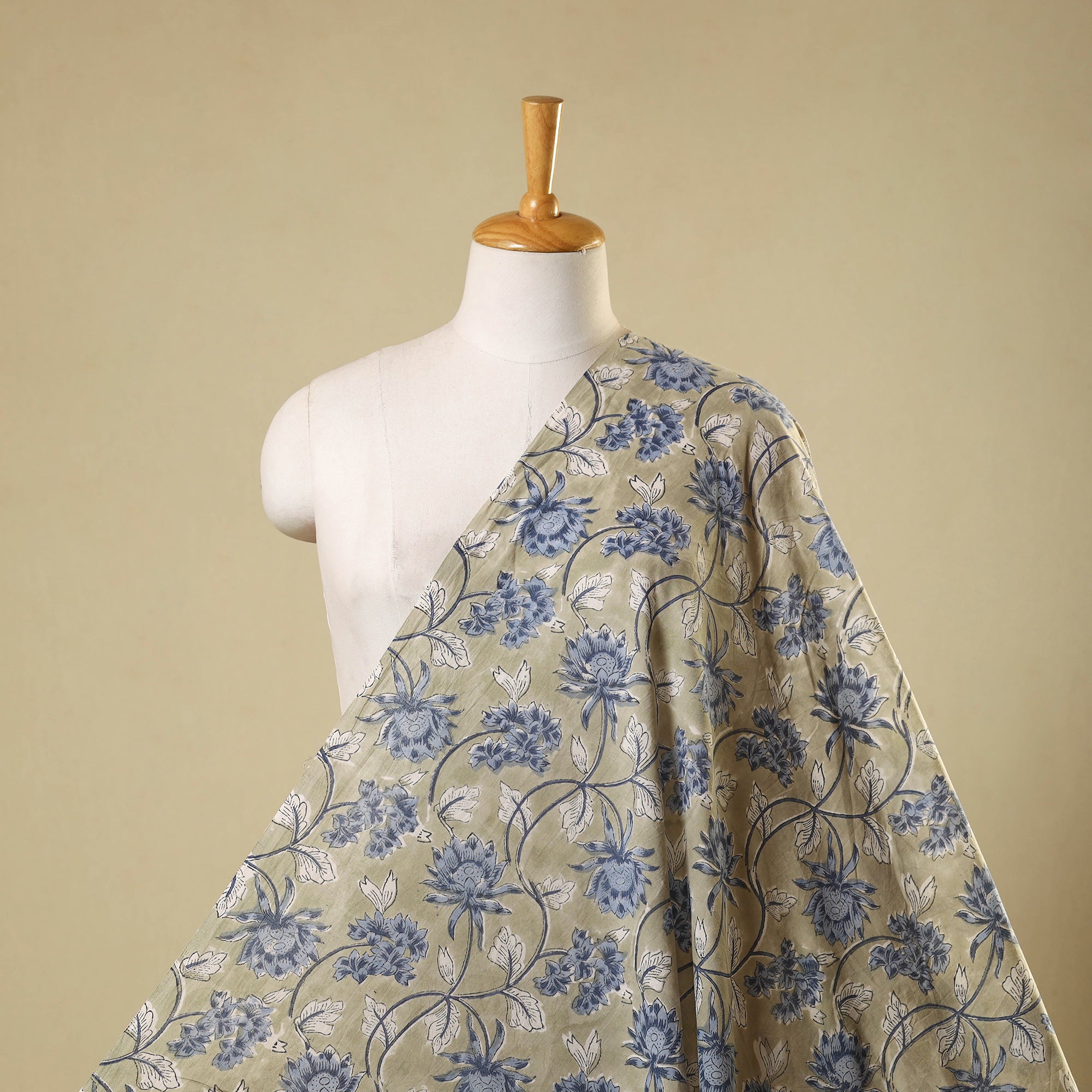 Beige - Hand Block Print Cotton Sanganeri Fabric 08