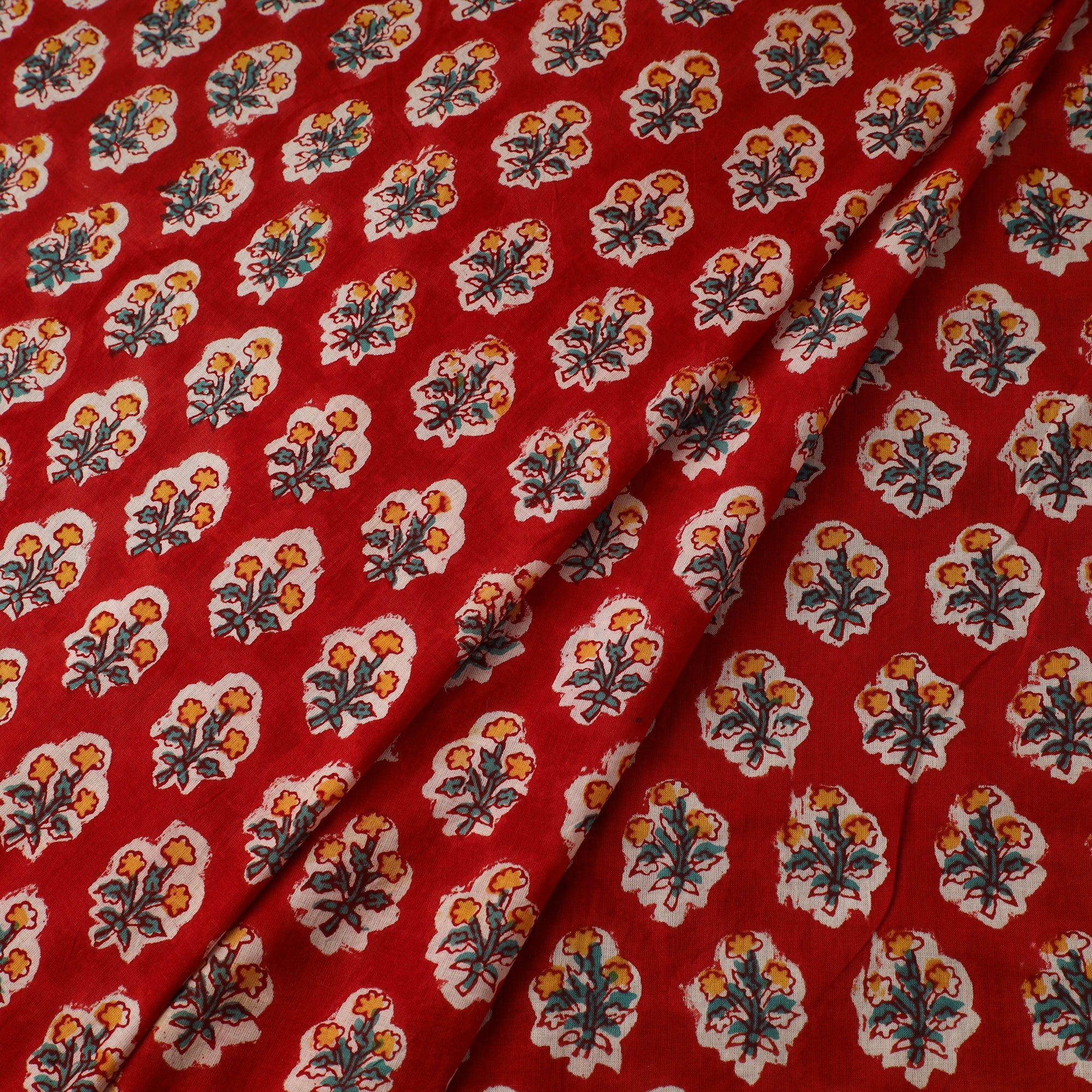 • Red Sanganeri Block Print Cotton Fabric