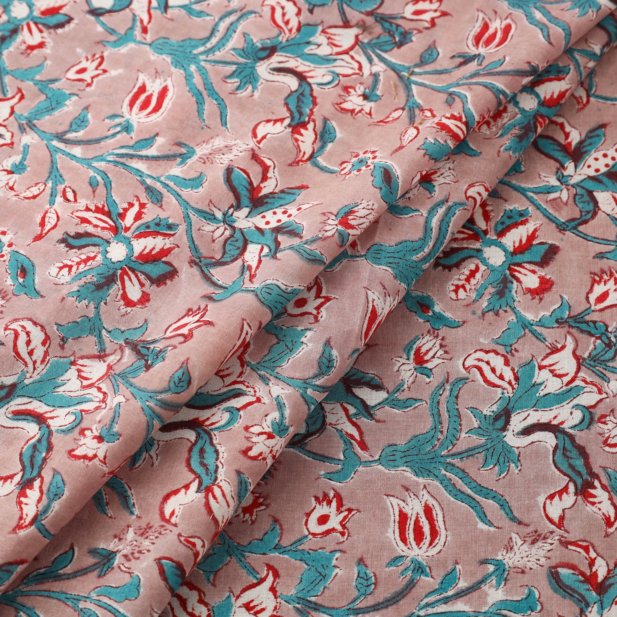 Pink - Cotton Hand Block Sanganeri Print Fabric 10