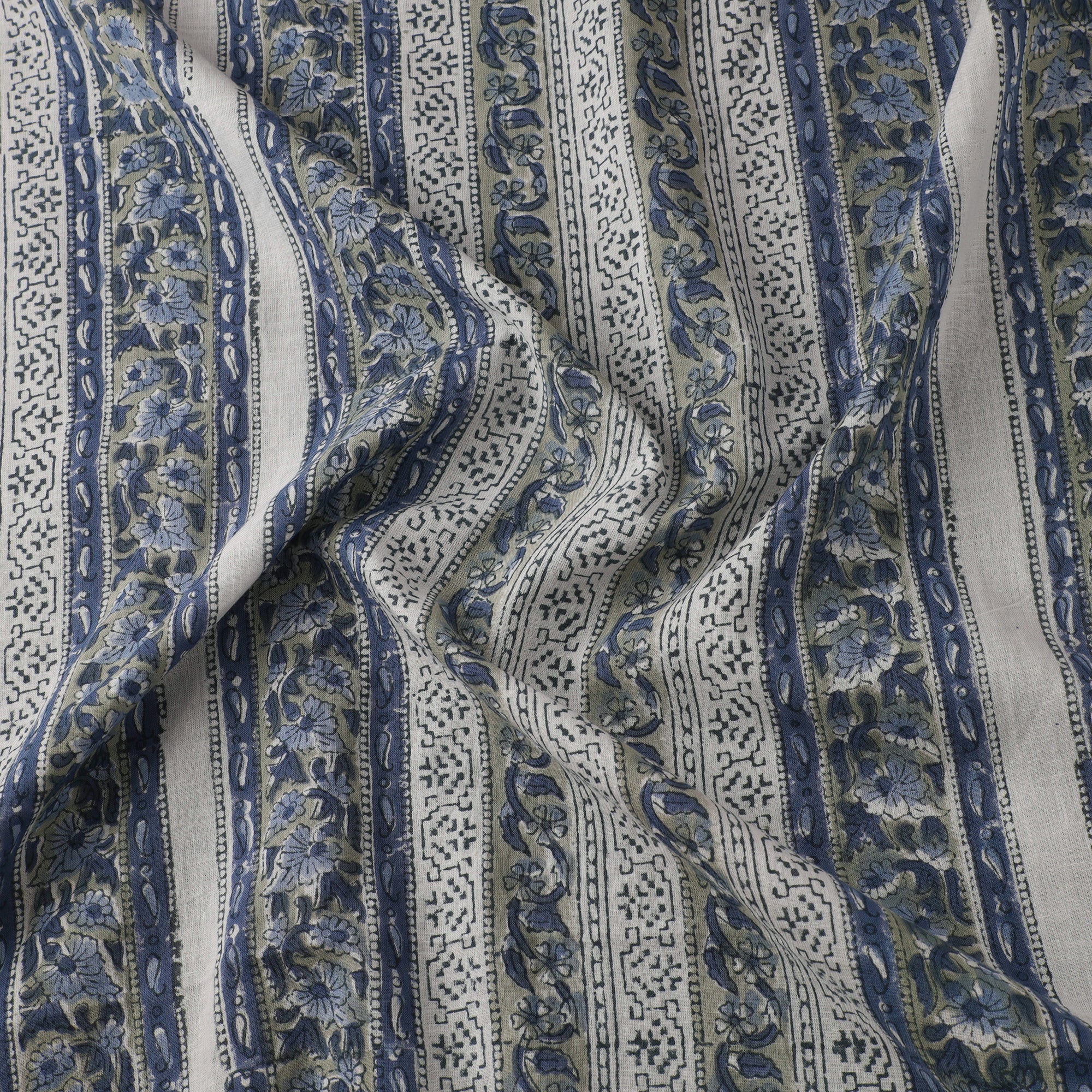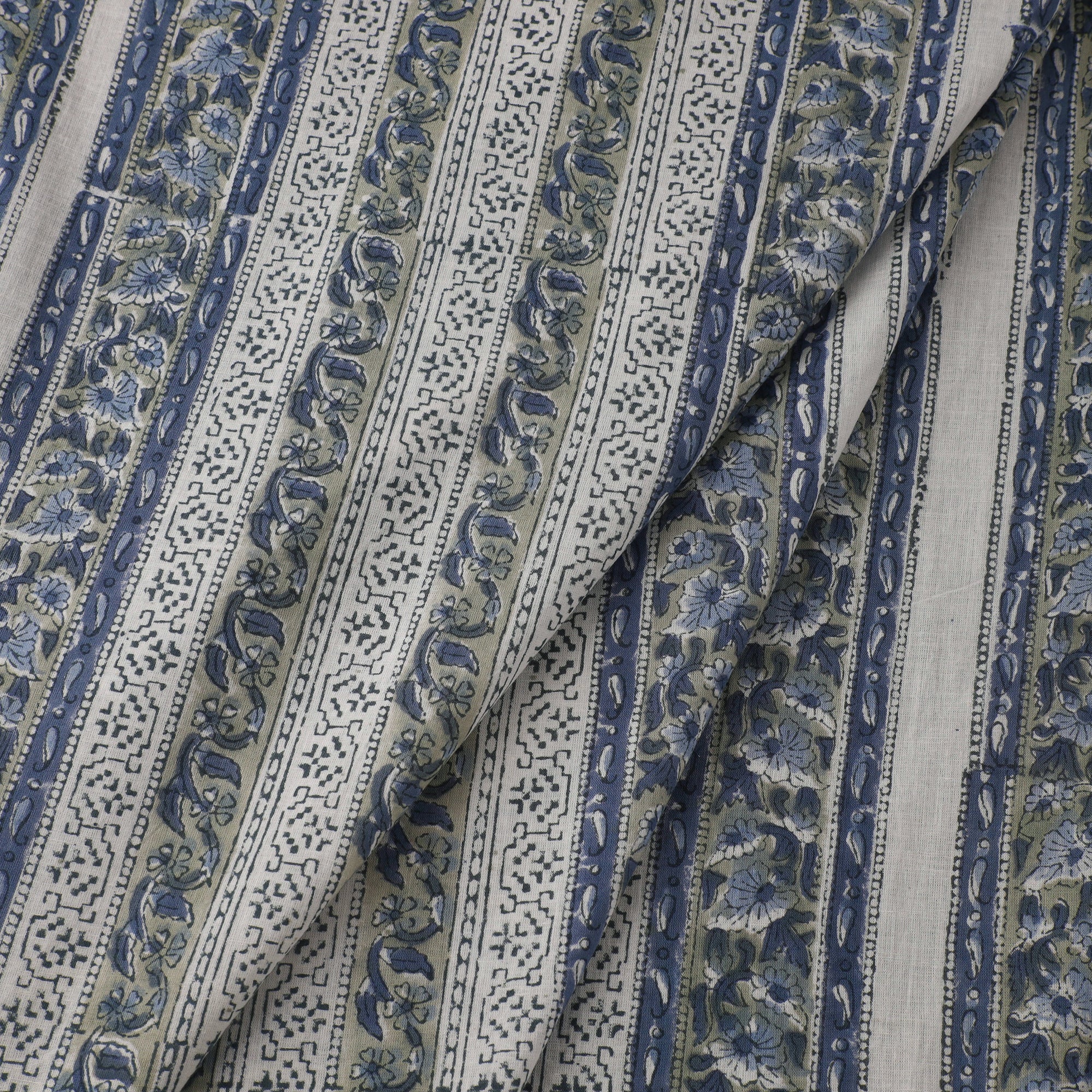 Green - Hand Block Print Slub Cotton Sanganeri Fabric 12