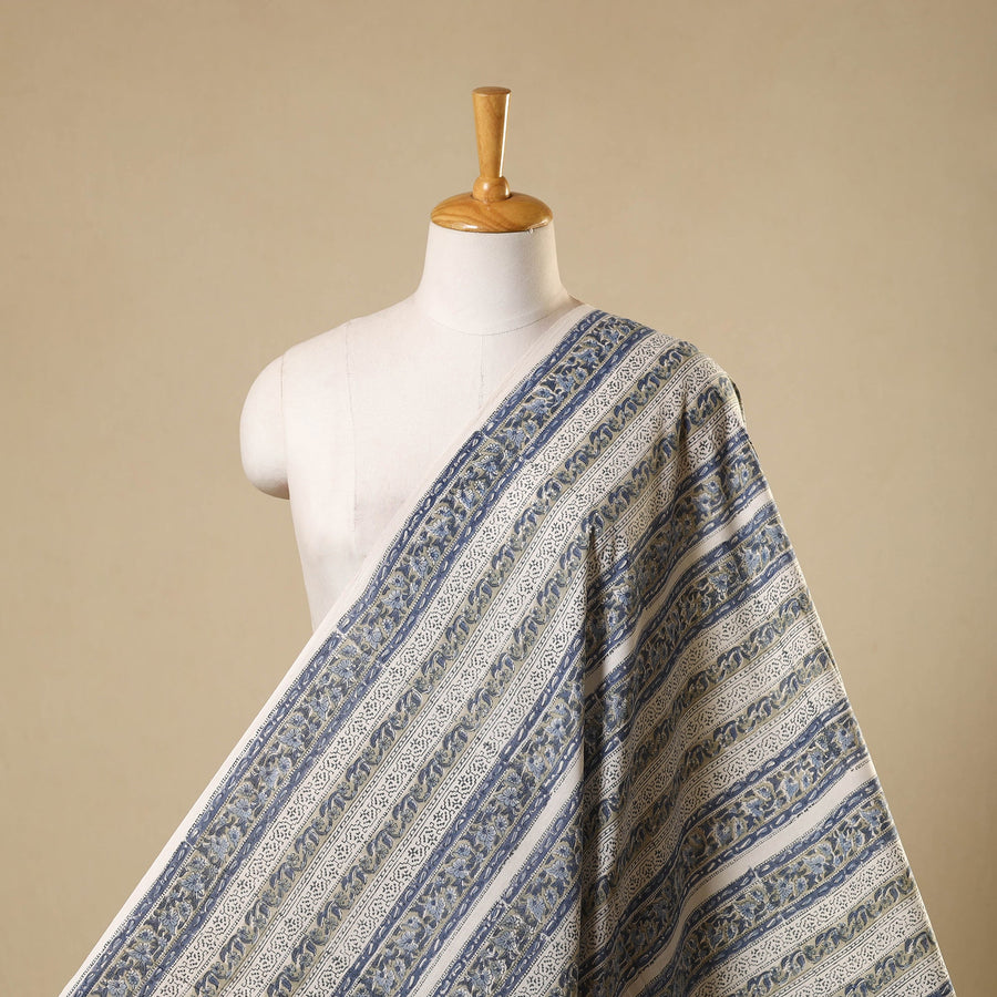 This blue cotton sanganeri fabric captures the charm of Rajasthan’s block printing heritage. Crafted using hand-carved wooden blocks, artisans create intricate floral patterns. Perfect for making kurtas, dresses, tunics, or charming home accents like cushions and curtains, this soft, airy cotton ensures both style and comfort.