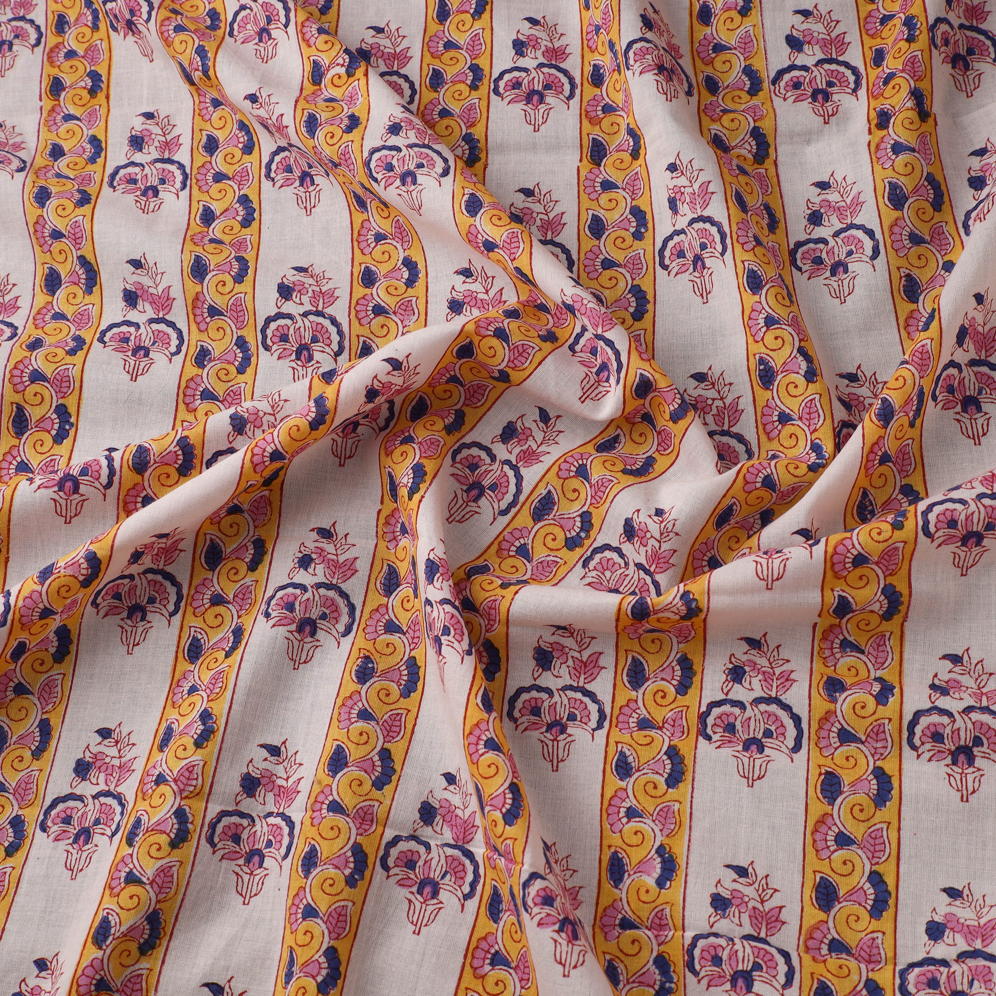 This white cotton sanganeri fabric captures the charm of Rajasthan’s block printing heritage. Crafted using hand-carved wooden blocks, artisans create intricate floral patterns. Perfect for making kurtas, dresses, tunics, or charming home accents like cushions and curtains, this soft, airy cotton ensures both style and comfort.