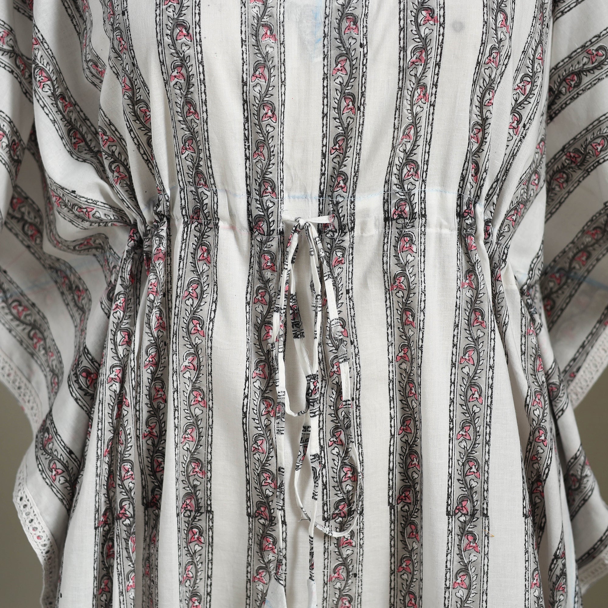 White - Sanganeri Block Print Cotton Kaftan (Medium) 10