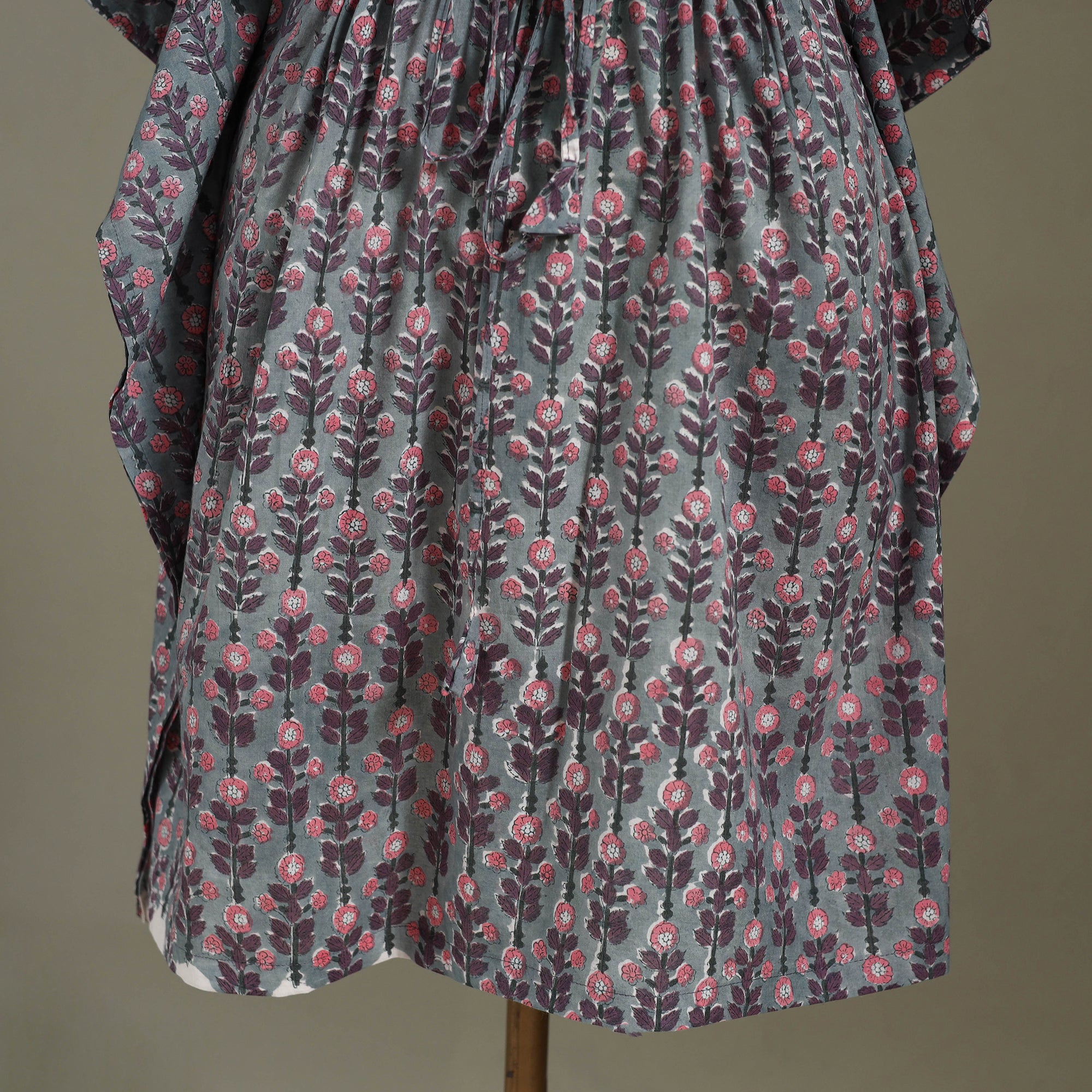 Grey - Sanganeri Block Print Cotton Kaftan (Medium) 27