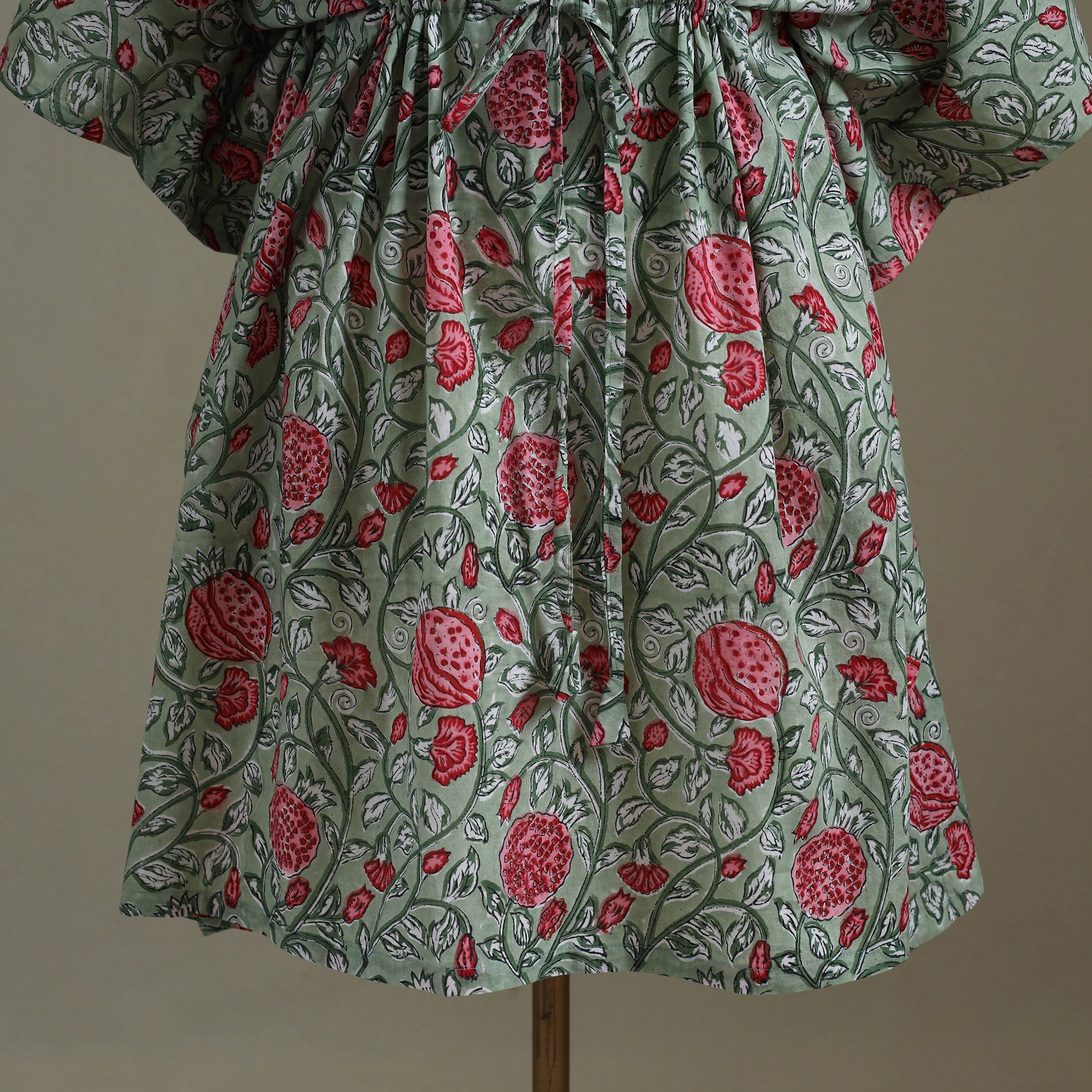 • Green Sanganeri Block Print Cotton Kaftan (Medium)