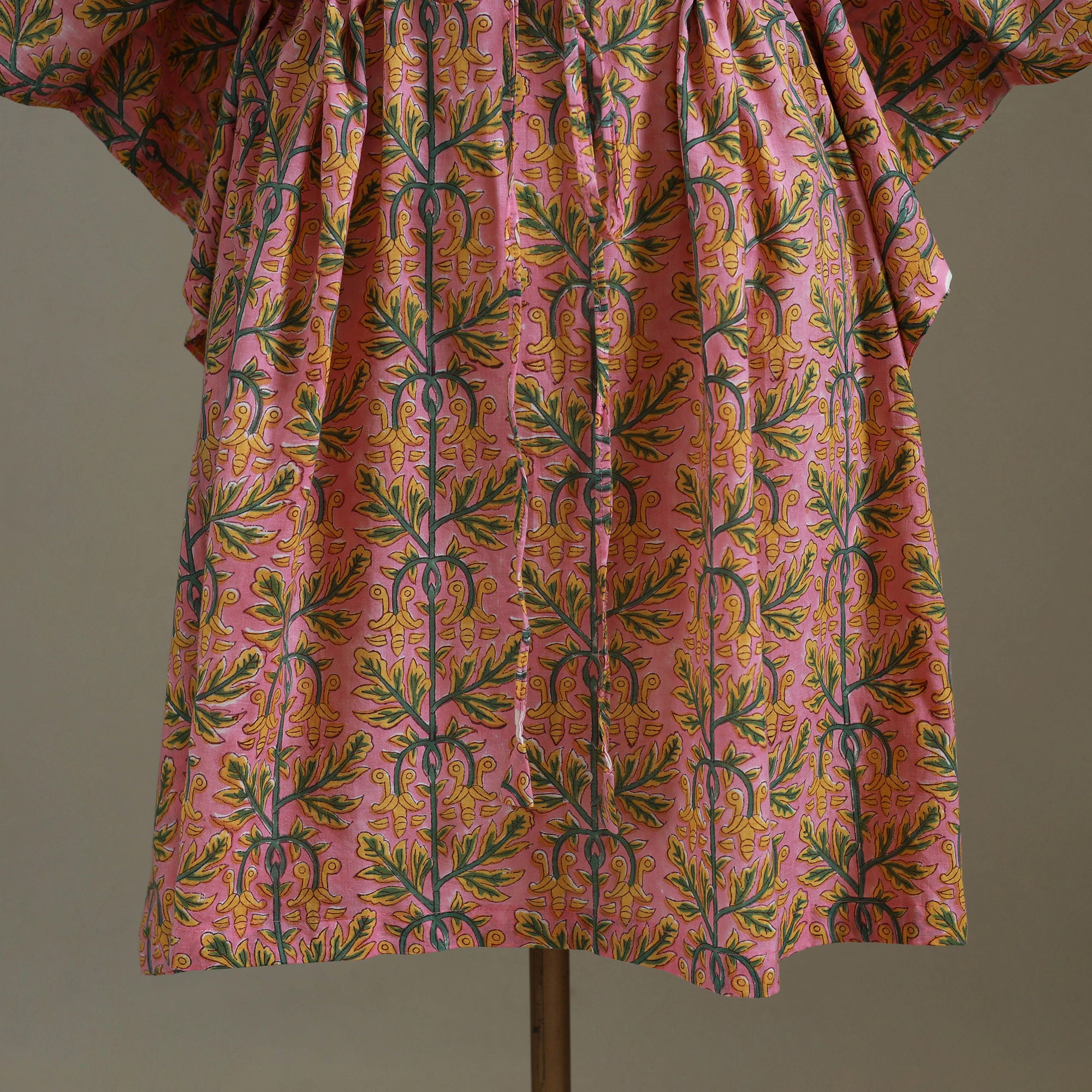 • Peach Sanganeri Block Print Cotton Kaftan (Medium)
