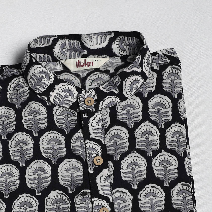 Sanganeri hand block print pure cotton Long kurta for men, featuring sanganeri printing, a centuries-old technique practiced for over 500 years and known for its fine detailing and floral patterns. Dyed using bleed-free VAT colours, it has full sleeves, front button placket with chinese collar and convenient two side pockets making it ideal for daily wear or casual outings.