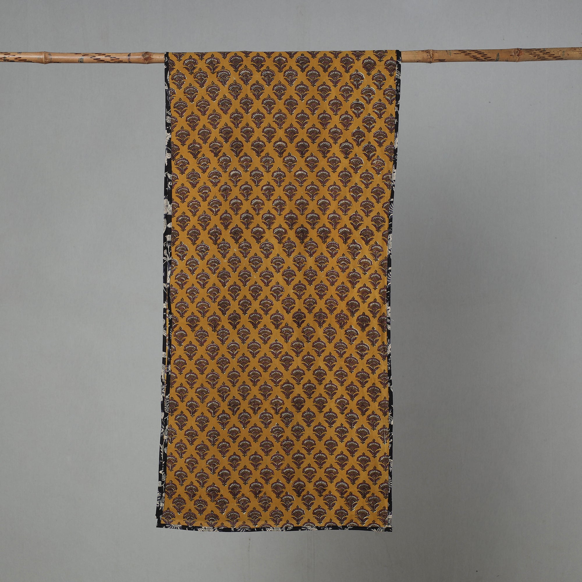 Yellow - Hand Block Print Chanderi Silk Sanganeri Fabric 02
