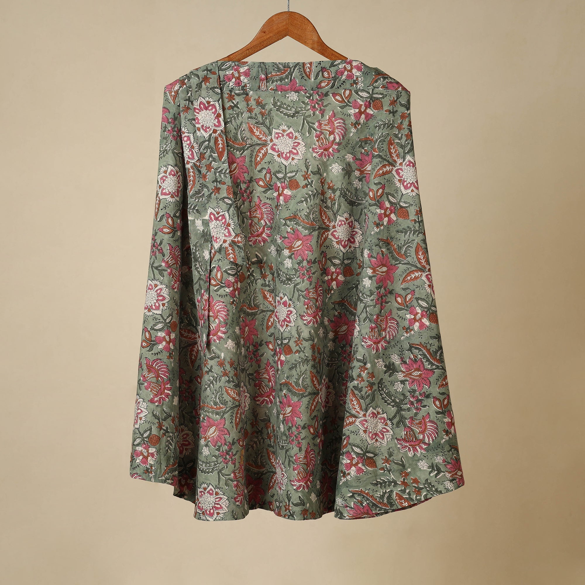 Green - Sanganeri Block Print Cotton Wrap Around Skirt 19