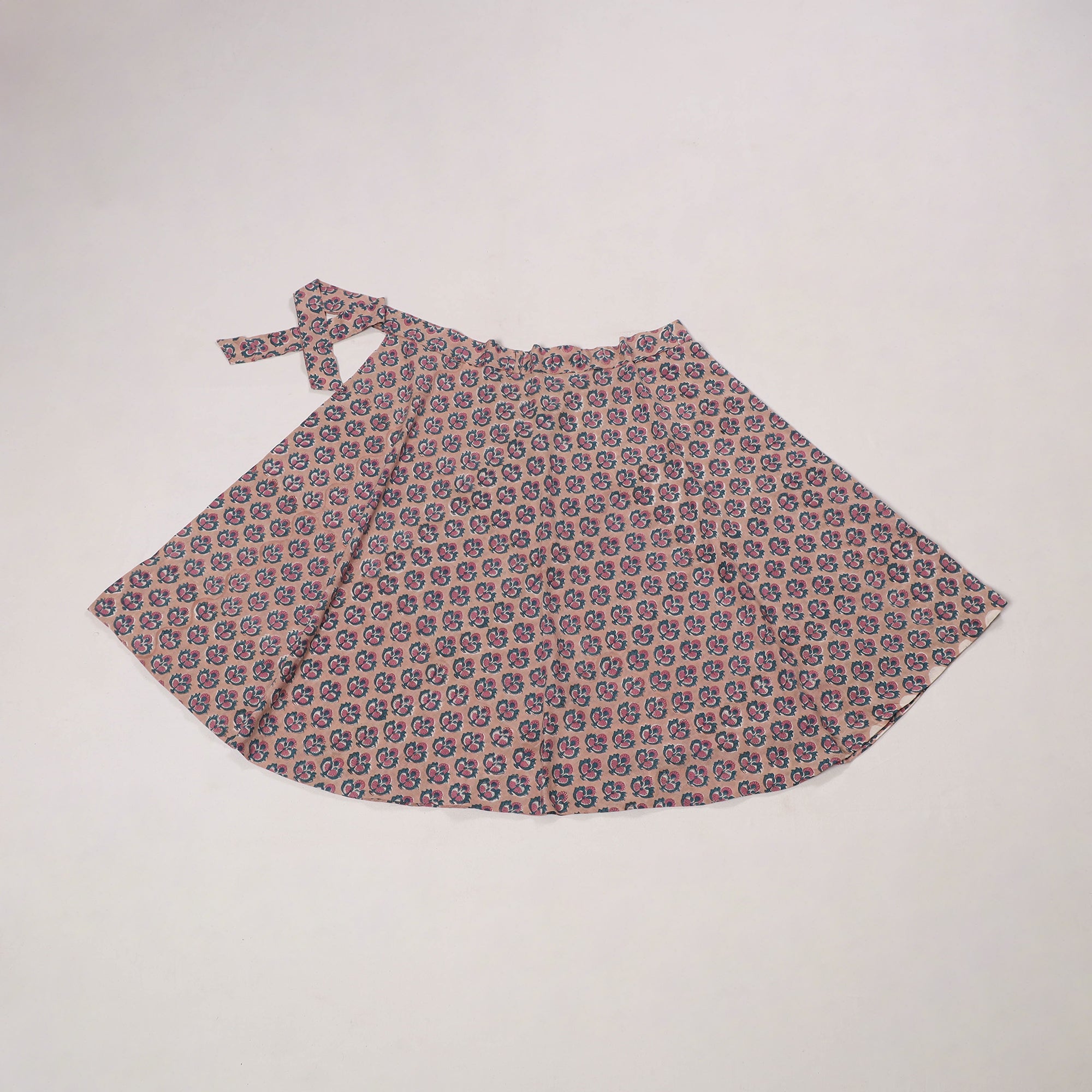 Add charm to your wardrobe with this peach sanganeri hand block print cotton wrap-around skirt. Featuring a classic tie-up waist closure, this skirt blends comfort with ethnic elegance. The intricate motifs are created using the traditional sanganeri printing technique, which originated in Sanganer, Rajasthan. Known for its floral patterns, this skirt is ideal for daily wear, vacations, or relaxed festive styling.