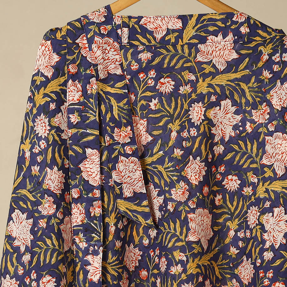 Add charm to your wardrobe with this blue sanganeri hand block print cotton wrap-around skirt. Featuring a classic tie-up waist closure, this skirt blends comfort with ethnic elegance. The intricate motifs are created using the traditional sanganeri printing technique, which originated in Sanganer, Rajasthan. Known for its floral patterns, this skirt is ideal for daily wear, vacations, or relaxed festive styling.
