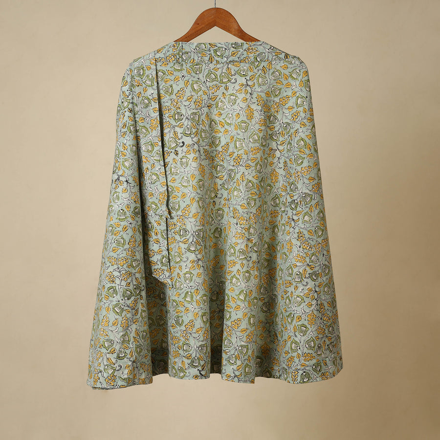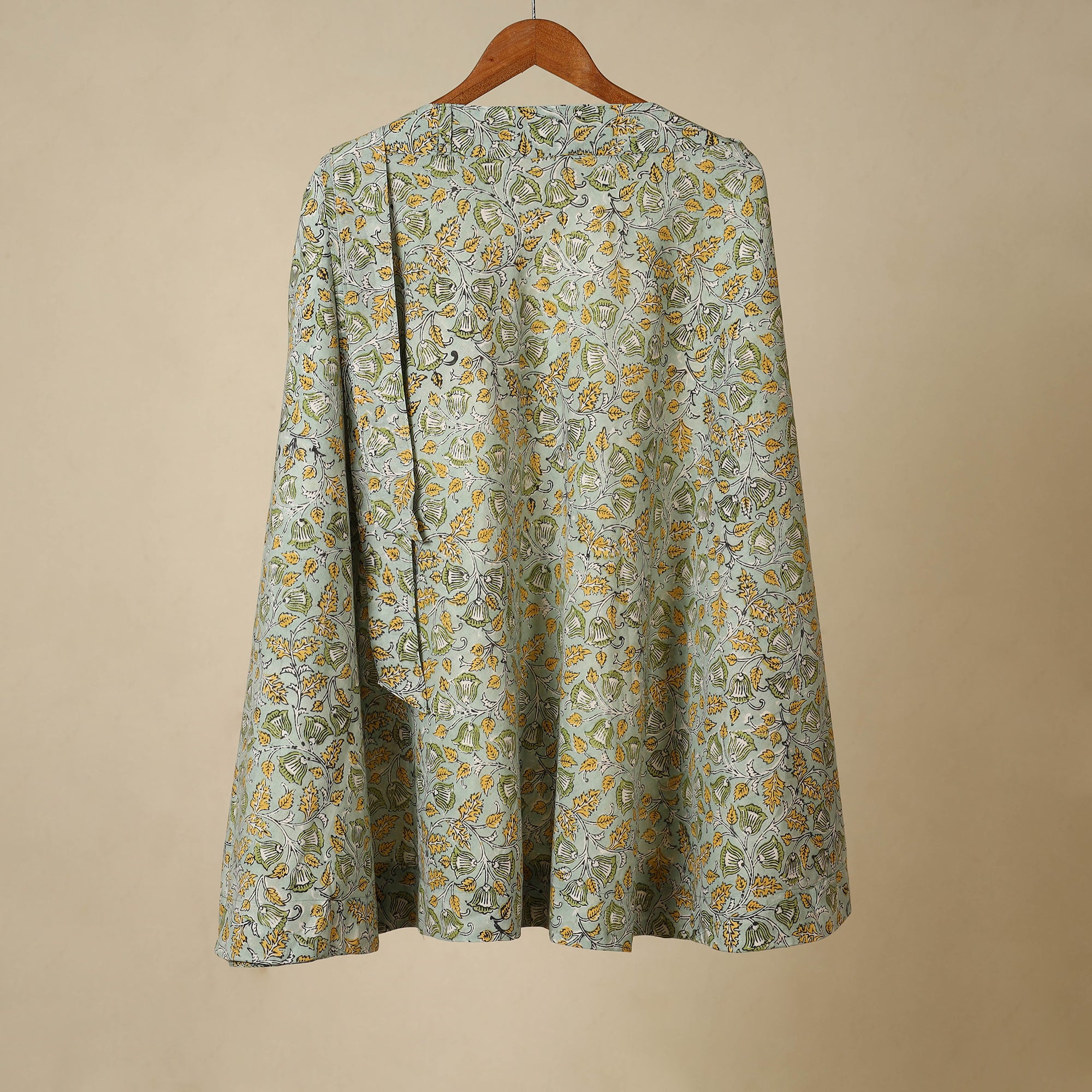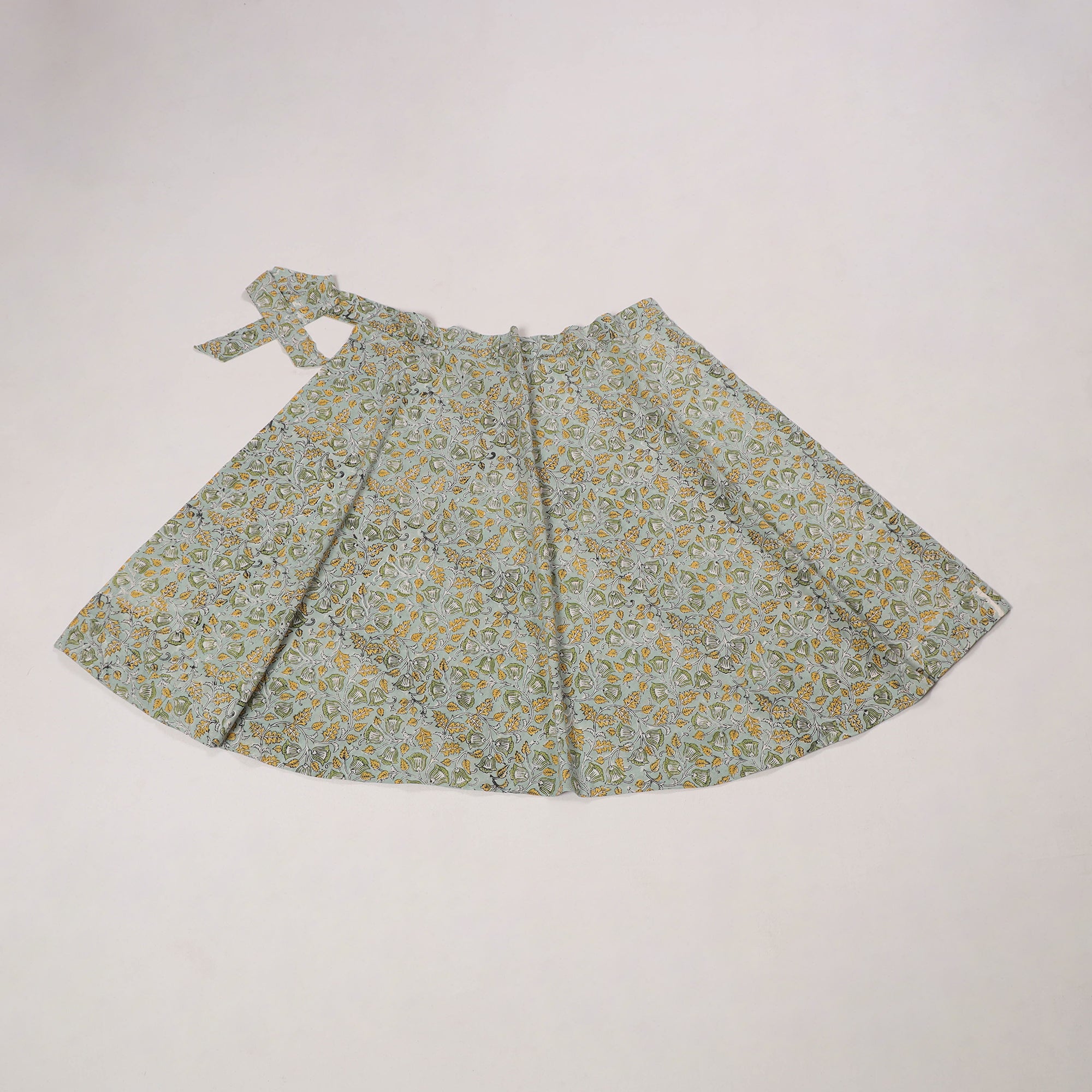 Add charm to your wardrobe with this green sanganeri hand block print cotton wrap-around skirt. Featuring a classic tie-up waist closure, this skirt blends comfort with ethnic elegance. The intricate motifs are created using the traditional sanganeri printing technique, which originated in Sanganer, Rajasthan. Known for its floral patterns, this skirt is ideal for daily wear, vacations, or relaxed festive styling.