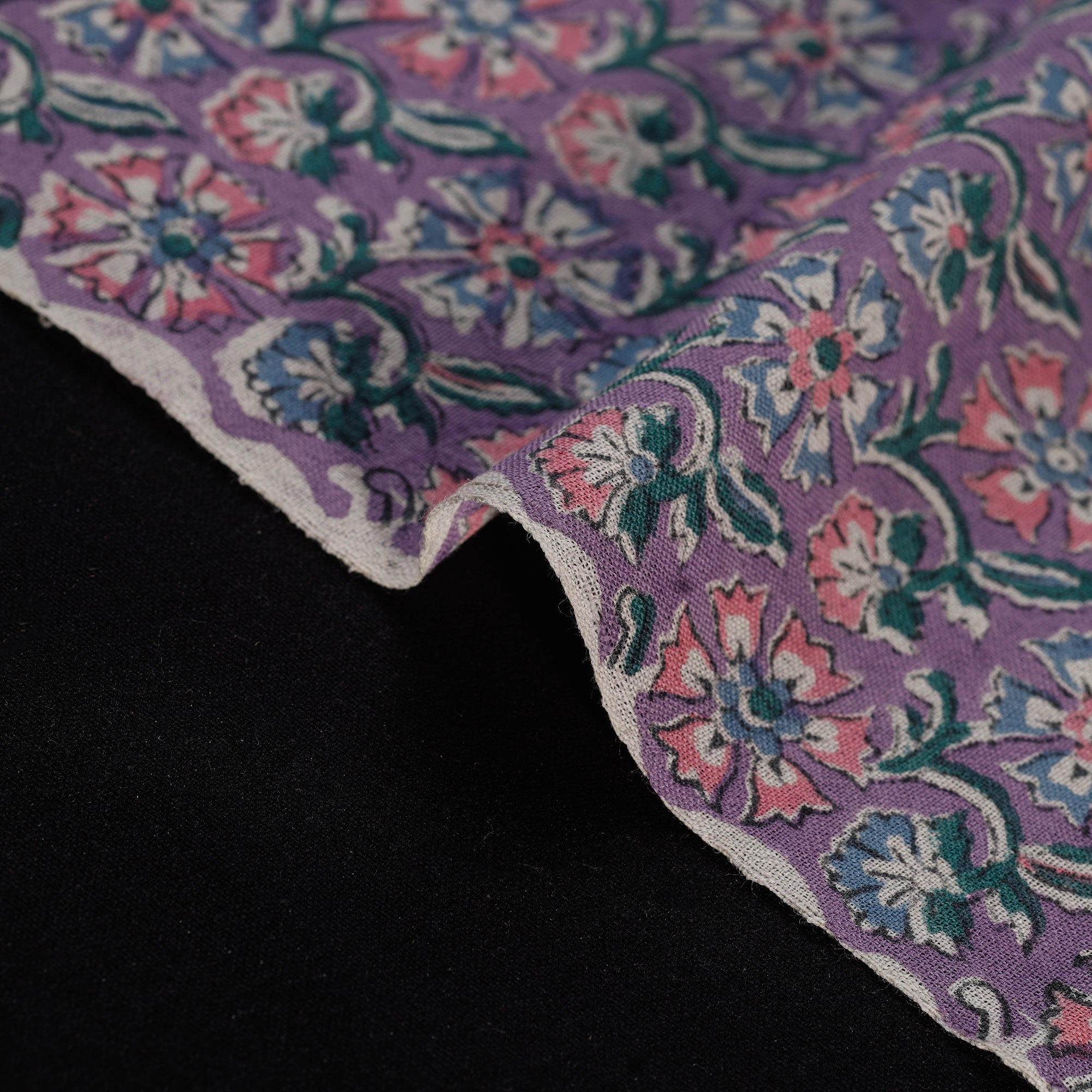 Purple sanganeri fabric is made from pure wool and crafted using the traditional block printing technique from Rajasthan. It features detailed designs and floral patterns created with bleed-free VAT dyes. Ideal for winter wear, it’s perfect for shawls, stoles or cosy ethnic suits.
