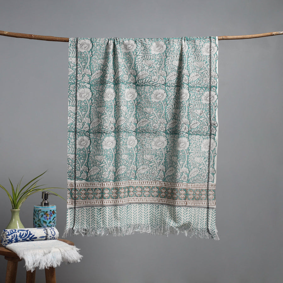 Sanganeri cotton towel is handwoven in Jhiri, Rajasthan and using traditional hand block-printing techniques by Purushottam Chhipa. Printed with bleed-free VAT dyes it features long-lasting and vibrant designs. A practical choice for everyday use, it reflects the beauty of traditional textile printing.