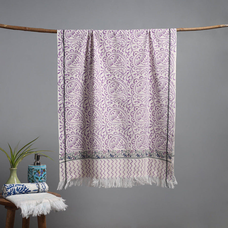 Purple - Sanganeri Block Print Handloom Towel 18