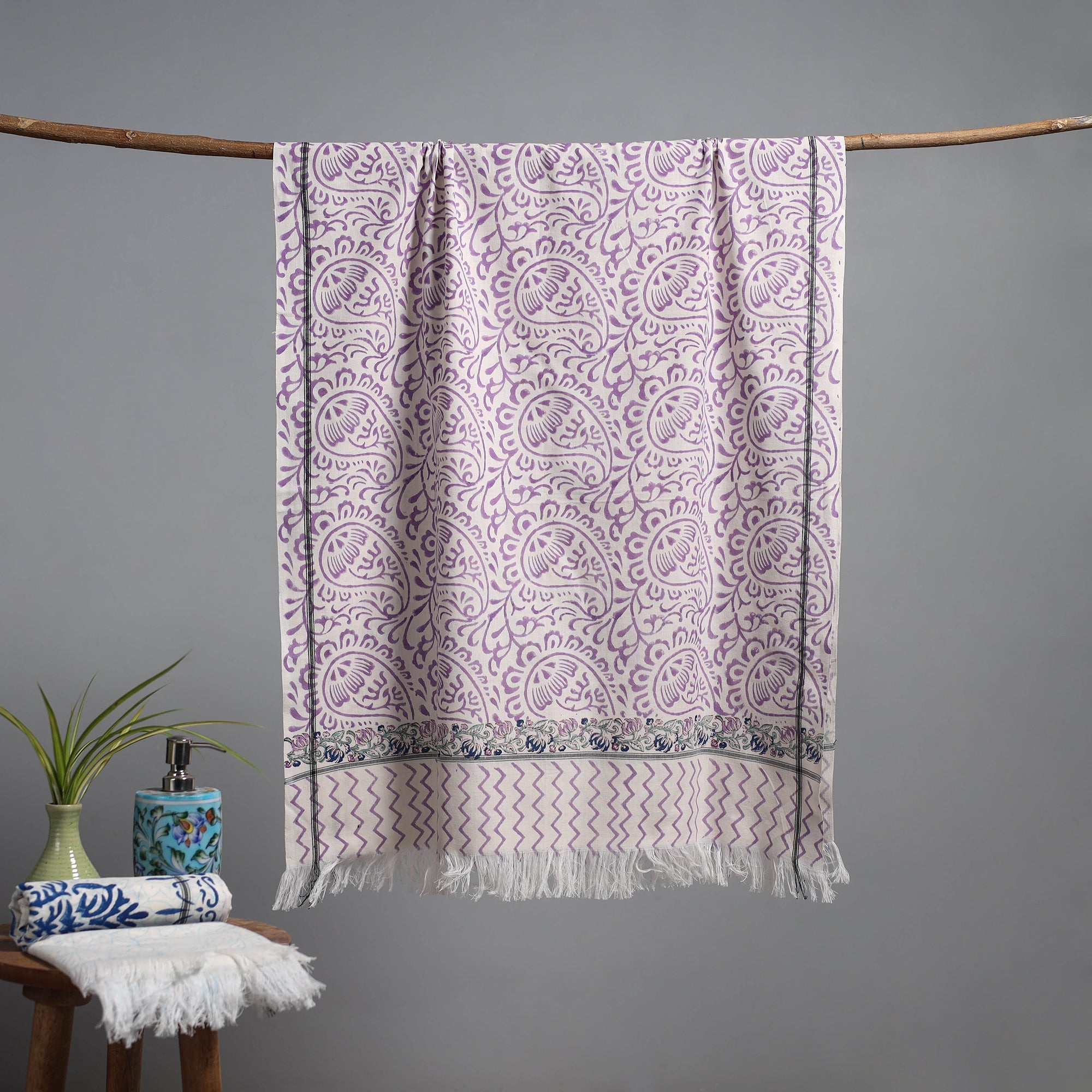 Sanganeri cotton towel is handwoven in Jhiri, Rajasthan and using traditional hand block-printing techniques by Purushottam Chhipa. Printed with bleed-free VAT dyes it features long-lasting and vibrant designs. A practical choice for everyday use, it reflects the beauty of traditional textile printing.