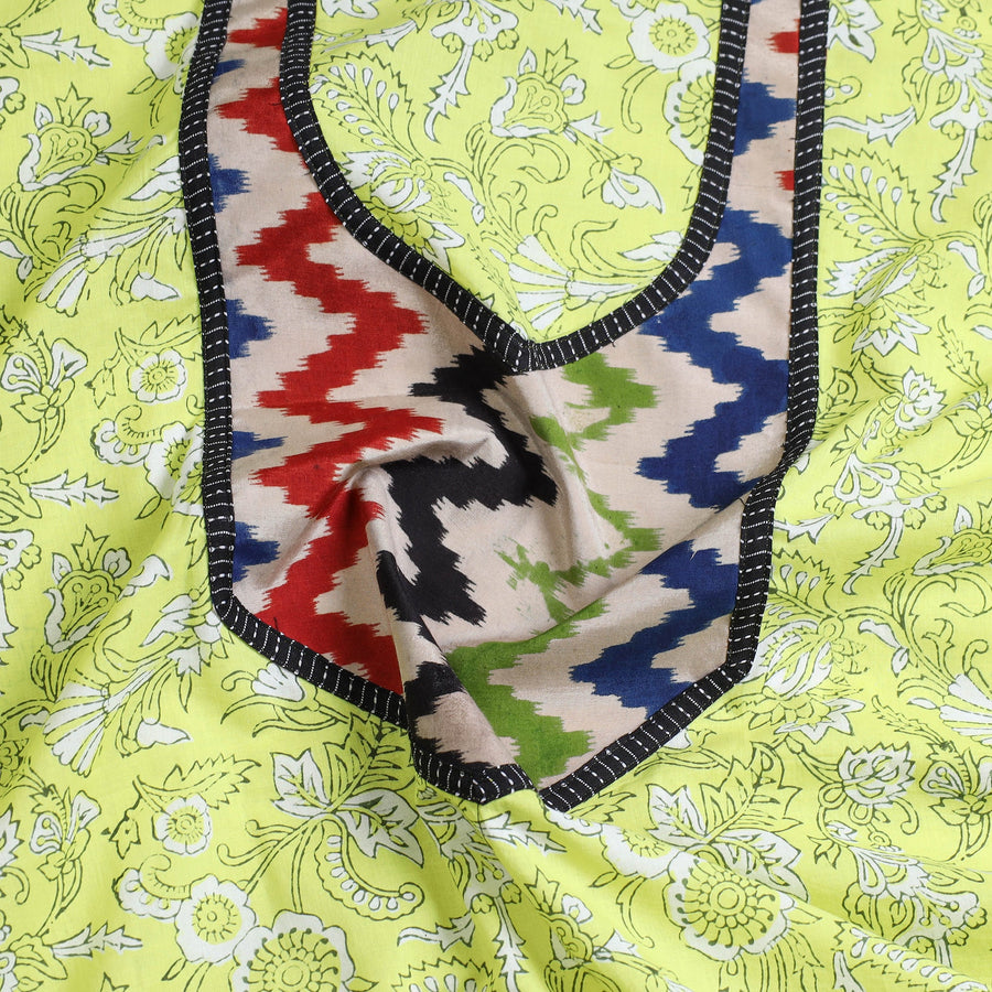 Enhance the look of your attire with our green sanganeri block print patchwork cotton kurta material. It features intricate floral block print patterns and stunning patchwork design. You will love to wear this as it is perfect for special occasions, formal or semi-casual look.